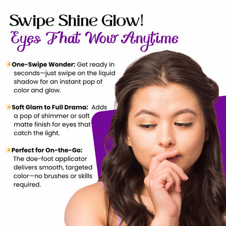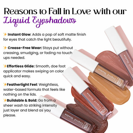 Introducing our lightweight Liquid Eyeshadow - your new go-to for a powerful, one-swipe punch of eye color that delivers intense, irresistible look. These high-impact matte and shimmer eyeshadows effortlessly glide on and dry down in a flash, making it a breeze to express your beauty with ease.