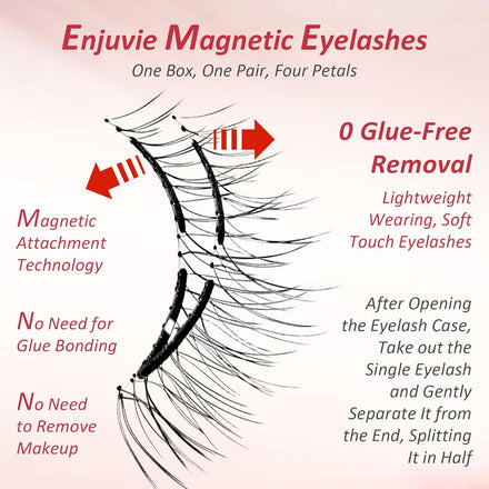 - 【Adhesive-Free & Gentle Wear】 Enjuvie magnetic eyelashes eliminate harsh glues → offering a gentle solution for delicate eyes. Enjoy a seamless, natural look perfect for daily wear → travel, or special occasions.