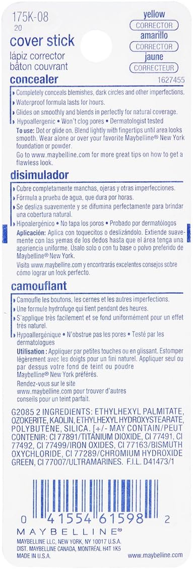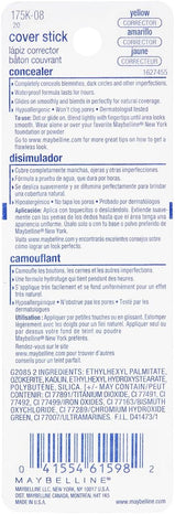 Maybelline New York Cover Stick Corrector Concealer, Yellow Corrects Dark Circles, 0.16 oz.