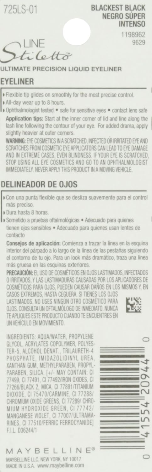 Maybelline New York Line Stiletto Ultimate Precision Liquid Eyeliner, Blackest Black, 0.05 fl. oz.