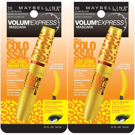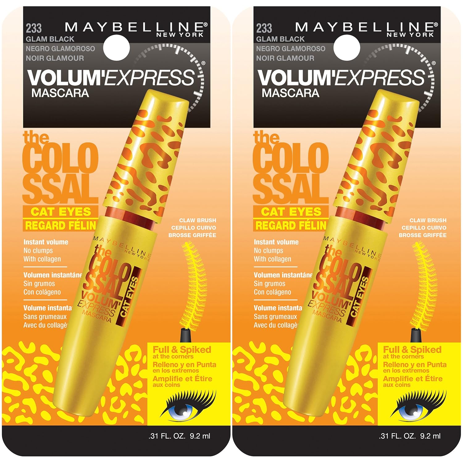 Maybelline New York Volume Express Colossal Cat Eyes Washable Mascara, Glam Black, 0.31 Fl Oz