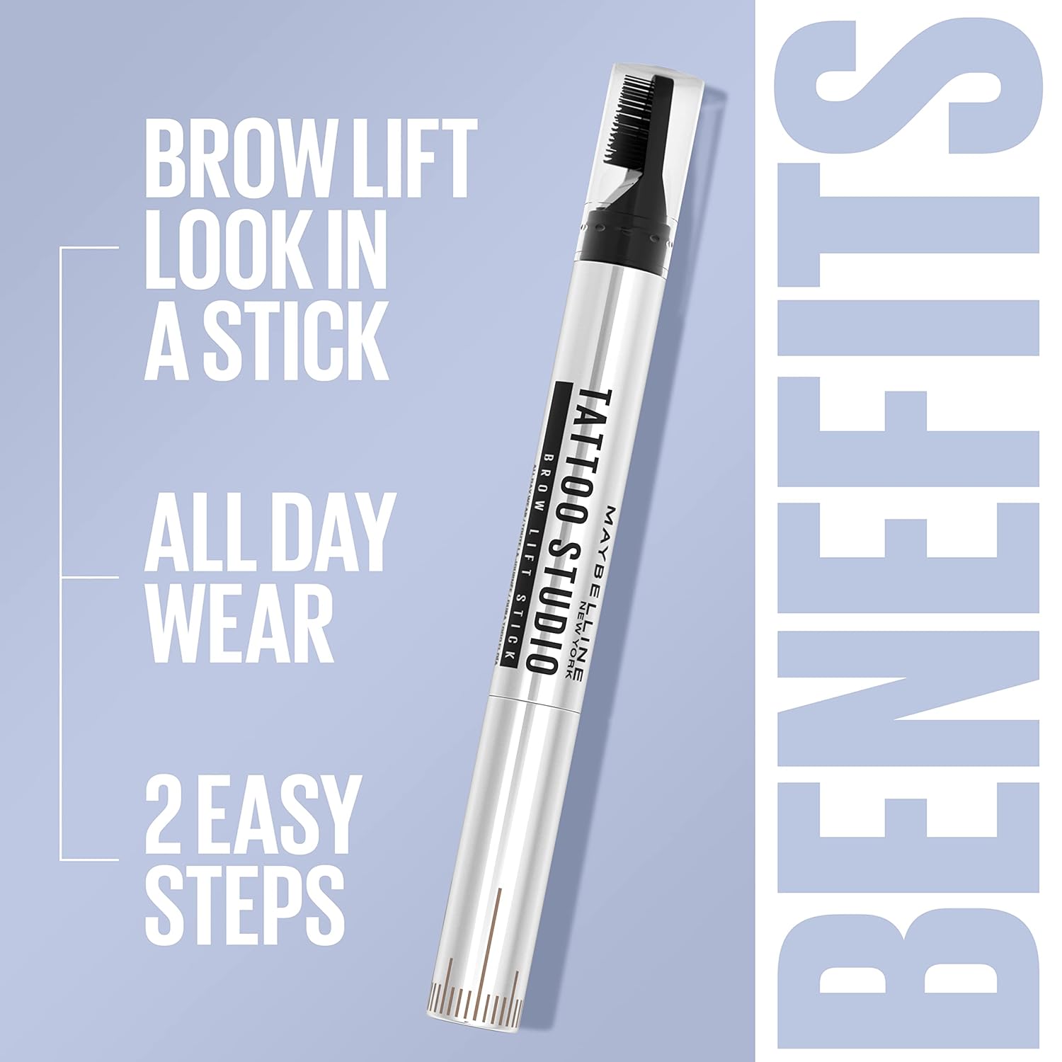 Maybelline TattooStudio Brow Lift Stick Makeup with Tinted Wax Conditioning Complex, Soft Brown, 1 Count