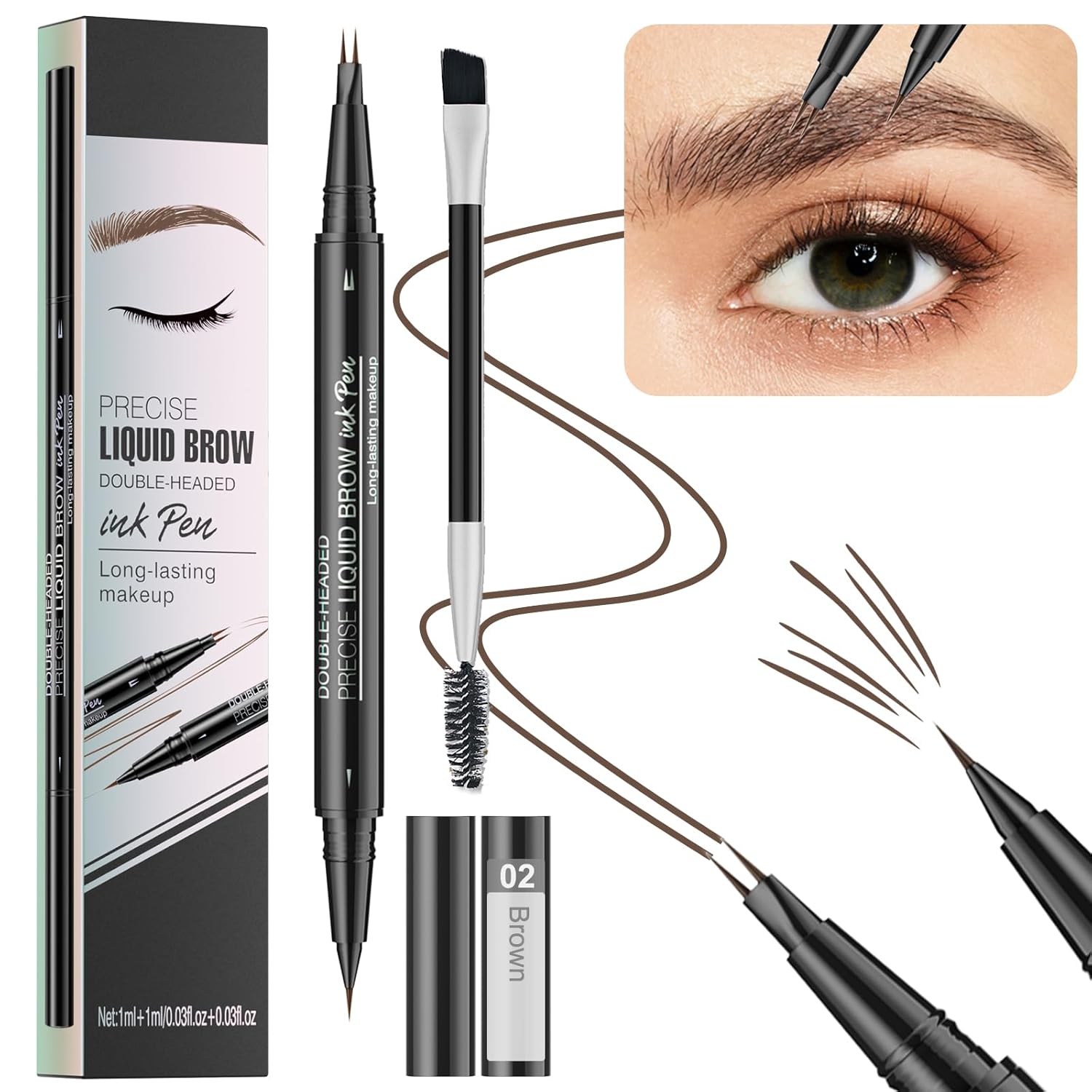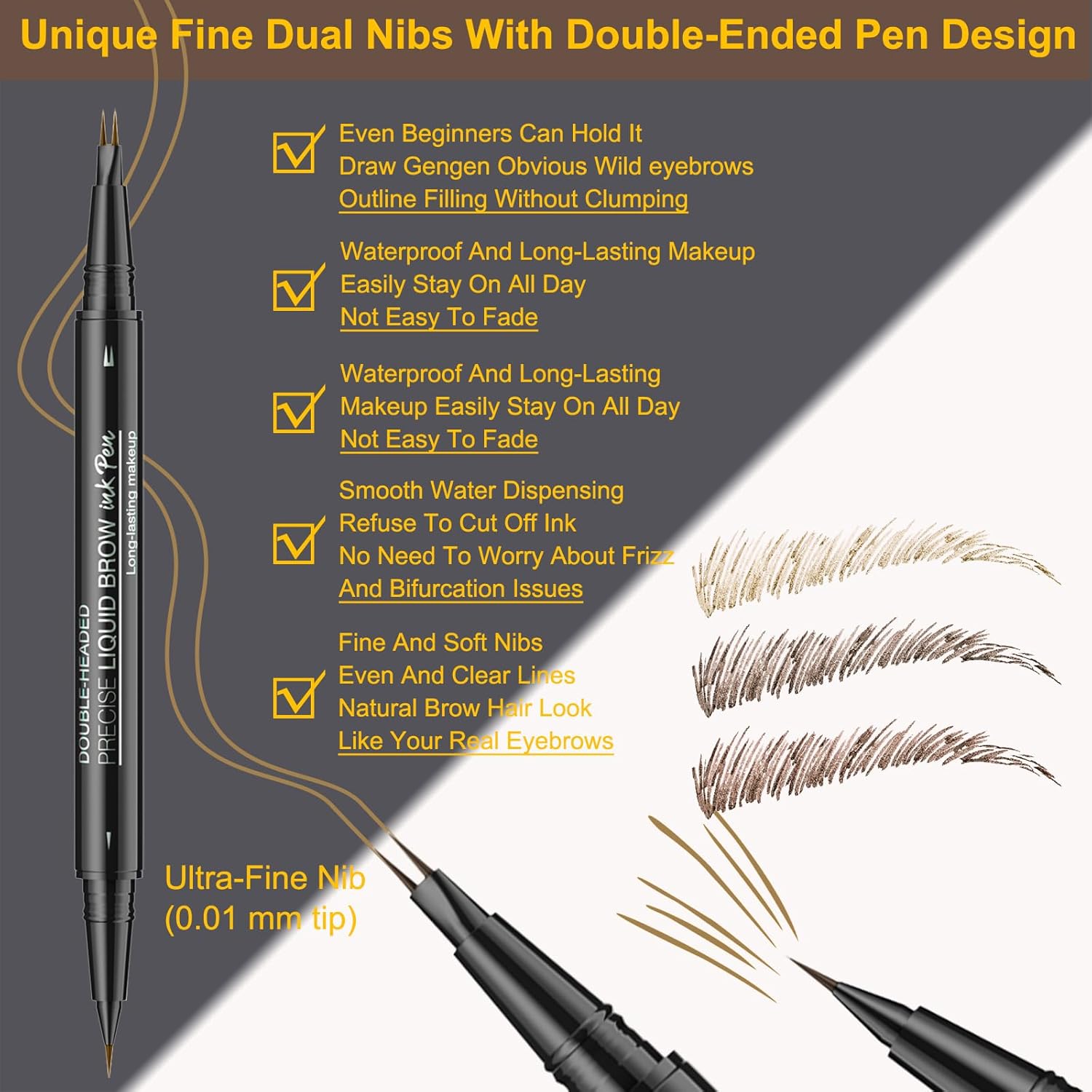 - 【Long-lasting Waterproof & Smudgeproof】Innovative 2-in-1 dual-ended waterproof eyebrow pen, we use a unique waterproof non-drying formula that is highly pigmented, fast drying and stays strong to provide up to 24 hours of wear, it's long-lasting, waterproof, sweatproof, smudge-proof, fade-proof, no need to worry about swimming, Sweating from running or exercising can cause staining, you can party all night long, no need to worry about smudging during the event any more.liquid eyebrow pen It's built to last no matter the challenge,Your brows will stay flawless