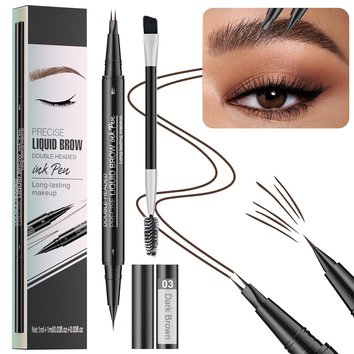 - 【Just Like Your Real Brows】: This double-ended microblading eyebrow pen with 0.01 ultra-fine tip and 2-pronged tips can easily create slender, realistic, fuller, natural and vivid 3D eyebrows, making the eyebrows look so real and creating a bare-faced beauty. There's no telling it's makeup, with hair-like strokes that fill in sparse areas and achieve a flawless, natural look in just minutes. Say goodbye to spending too much time on brows, whether you're a working professional or looking for impeccable brows Ideal for time-saving options for busy people with brows