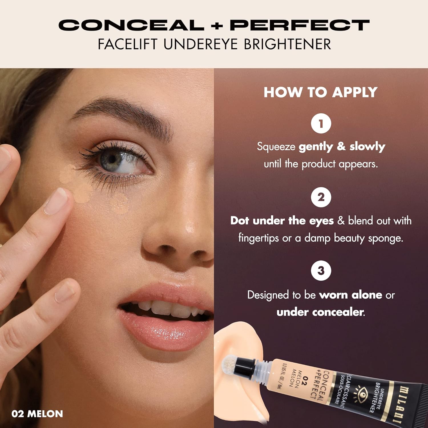 Milani Conceal + Perfect Undereye Brightener for Treating Dark Circles, Face Lift Collection - Rose