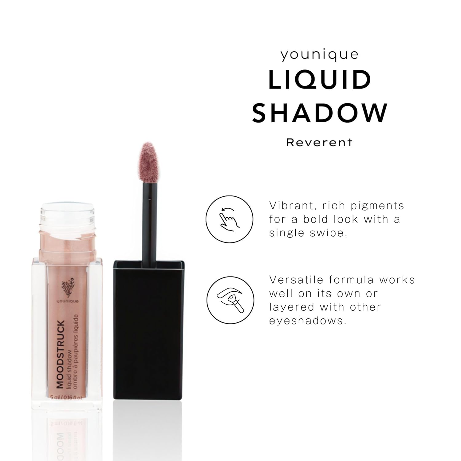 Elevate your eye look with Younique's Moodstruck Liquid Eyeshadow in Reverent – a soft Champagne Satin shade that adds a touch of radiance to your daily makeup routine. This cream-to-powder eyeshadow glides on smoothly and dries quickly, leaving a smudge-resistant, satin finish that lasts. The doe-foot applicator offers controlled, even application—ideal for both precise lines and all-over eyelid coverage. Whether you’re going for a subtle daytime shimmer or building intensity for a bold evening look, this versatile formula layers easily without creasing. Infused with squalane, the formula is designed for comfortable wear and a soft finish that feels as good as it looks. Its lightweight texture blends effortlessly, making it easy to create polished eye looks with minimal effort. Reverent’s buildable pigment provides flexibility to suit any occasion, from casual looks to more dramatic makeup styles. Compact and portable, it’s an excellent choice for quick touch-ups or on-the-go application. Add Moodstruck Liquid Eyeshadow to your makeup collection for smooth, blendable color and a soft satin glow that fits seamlessly into your beauty routine.