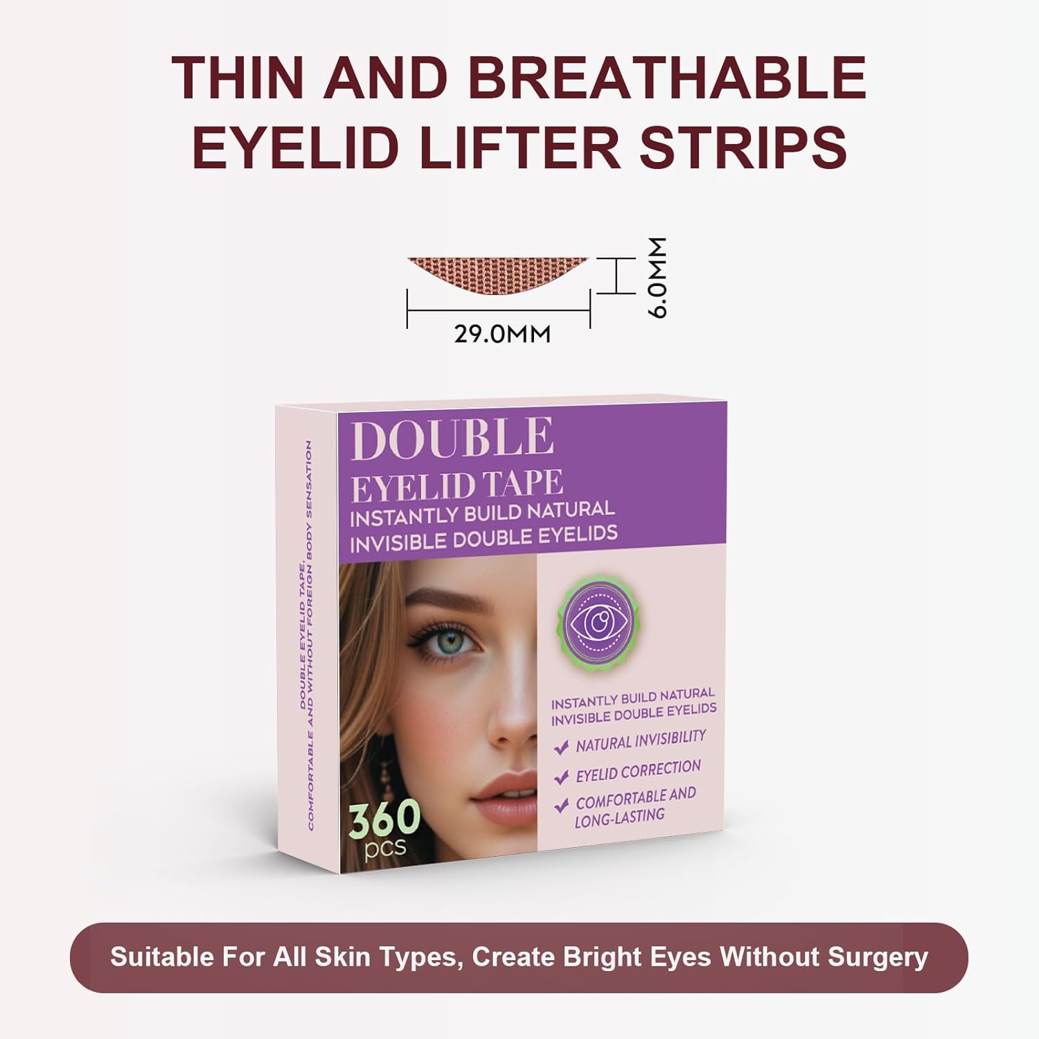 Natural Invisible Double Eyelid Tape 360pcs - Waterproof Lace Eye Lift Strips for Hooded/Sagging Eyes, Instant Enhancing Adhesive with Seamless Blend for All Eyelid Types