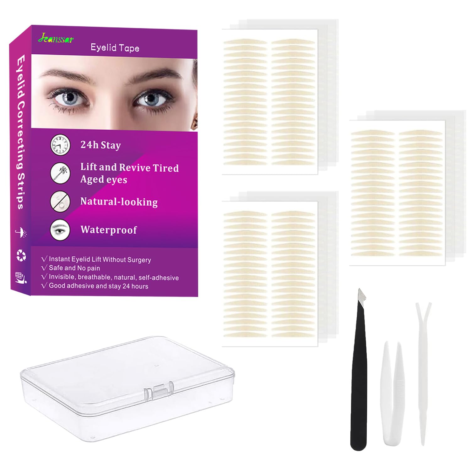 - Affordable and Safe Beauty Tool of Eyelid Lifting- The correcting eyelid strips can hide in hooded eyelid crease perfectly and lift excess skin of the eyelid without surgery. Put it on your eyelid crease, you will get the same effect of eyelid lifting at home without surgery. It is an affordable and safe beauty tool of eyelid lifting, worth trying them!
