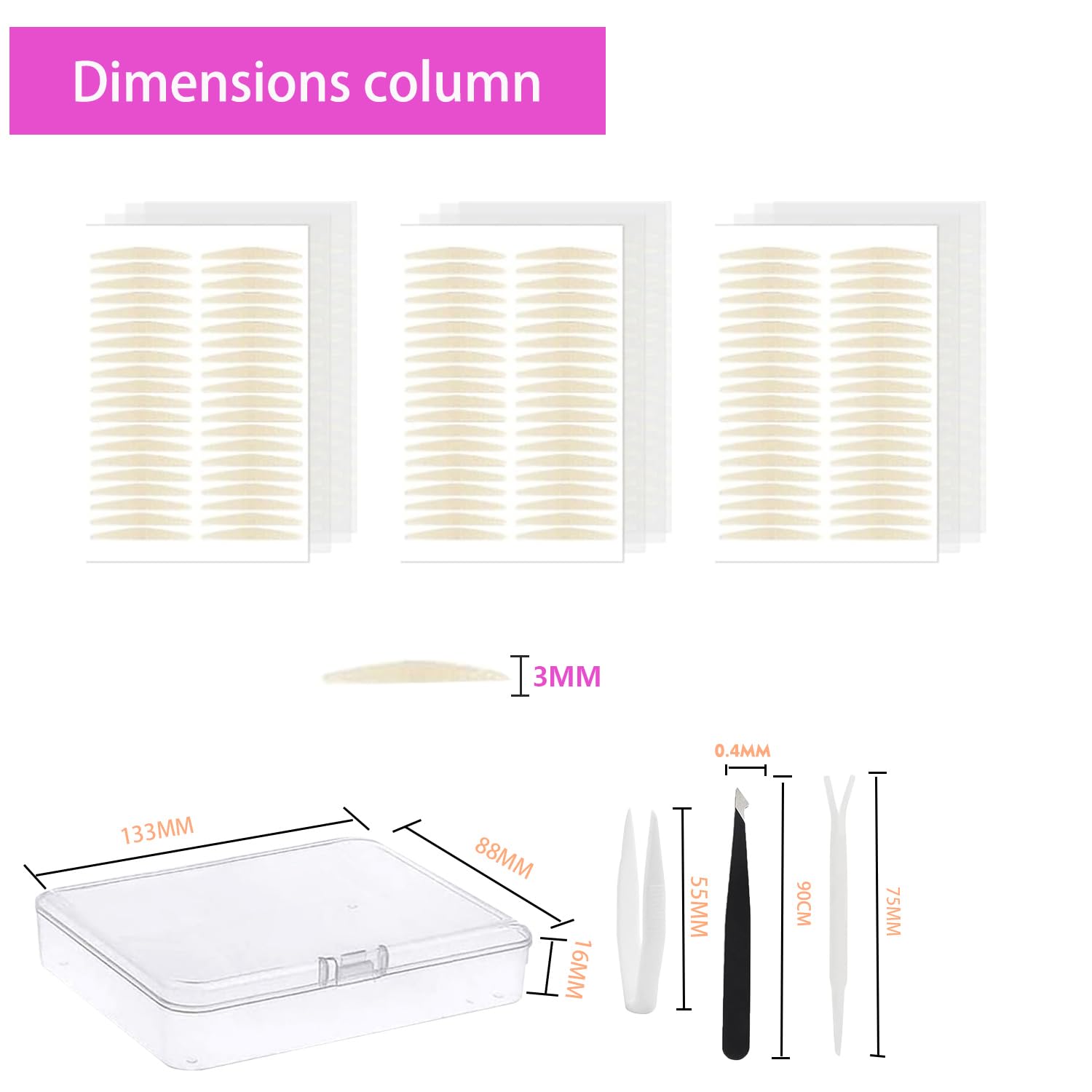 - Package Including- 3Packs Skin color 200pcs 3MM Double Eyelid Stickers,1 × Plastic Tweezer,2 x fork stick and an English instruction.Please contact us if you have any problem about the products, we are 24 hour online, will give you 100% Satisfaction Guarantee.