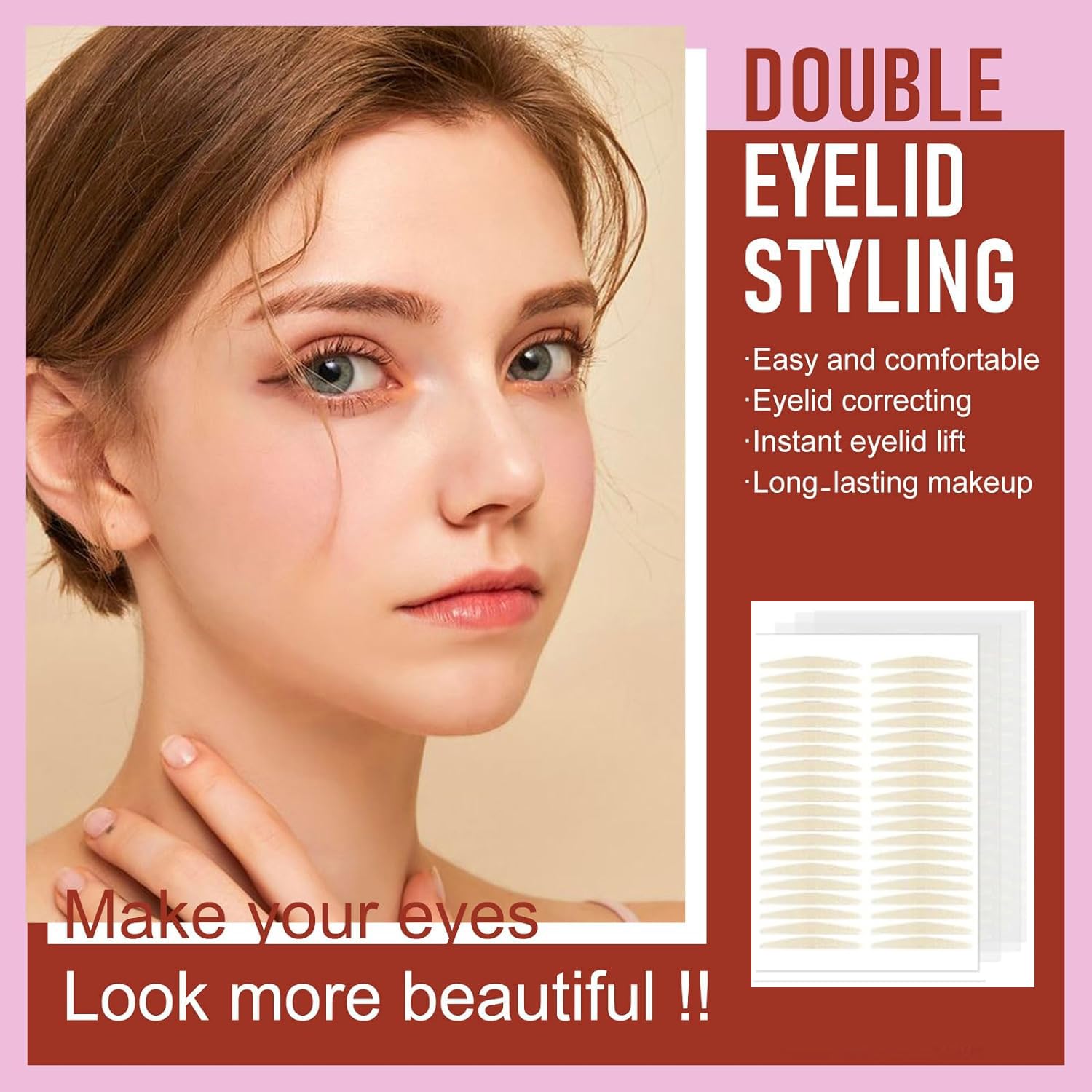 Our eyelid tape is a non-surgical Easy to create deep and natural double eyelid, makes eyes more beautiful and eyes seem rounder and larger.