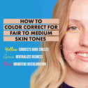 The quickest way to fix it all! Master the color-correcting techniques that have dominated your for you page! Get your fix on with a wide range of shades for all needs and skin tones. Correct, conceal, and brighten in a swipe! Color correcting made easy with 6 color correctors for all skin tones and 18 complexion shades to conceal & brighten like a pro. Fix dullness, redness, blemishes, dark spots, undereye circles, and discoloration for all skin tones and all skin types. After color correcting, layer on the complexion shades as needed to conceal & brighten. These comfortable 12-hour wear complexion shades layer flawlessly under and over foundation for a full-face fix. Crease-resistant, medium coverage with a natural finish! Infused with hyaluronic acid for the smoothest glide that’s never dry! A guide to our color correcting shade - 0.1 Green: neutralizes redness on light to medium skin tones. 0.2 Pink: brightens and conceals discoloration on fair to medium skin tones. 0.3 Yellow: brightens and conceals discoloration on fair to light skin tones. 0.4 Dark peach: brightens and conceals discoloration on medium to deep skin tones. 0.5 Apricot: conceals hyperpigmentation and offsets dark areas on deep skin tones. 0.6 Brick red: corrects deep discoloration on rich deep skin tones.