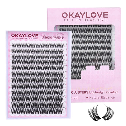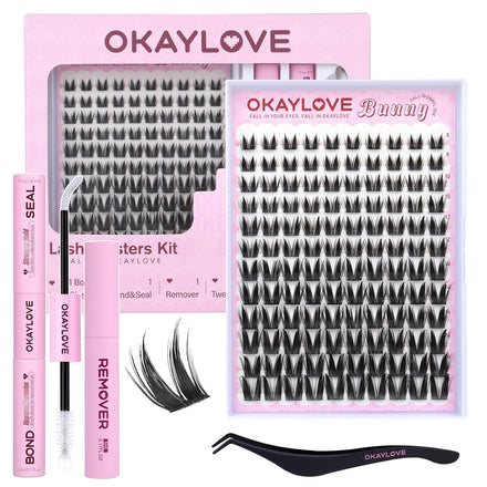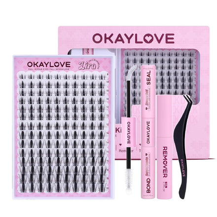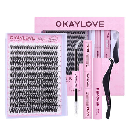 - FALL IN OKAYLOVE: Our DIY lash clusters kit includes 140pcs eyelash clusters (8-18mm), 1 Pcs 2-in-1 Lash Bond & Seal, curved tweezers, and a spiral brush lash remover per box. Achieving a flawless, natural finish at home has never been easier—strong, waterproof hold for 150+ hours, effortless application, and gentle, quick removal all in the OKAYLOVE cluster eyelash extensions kit.