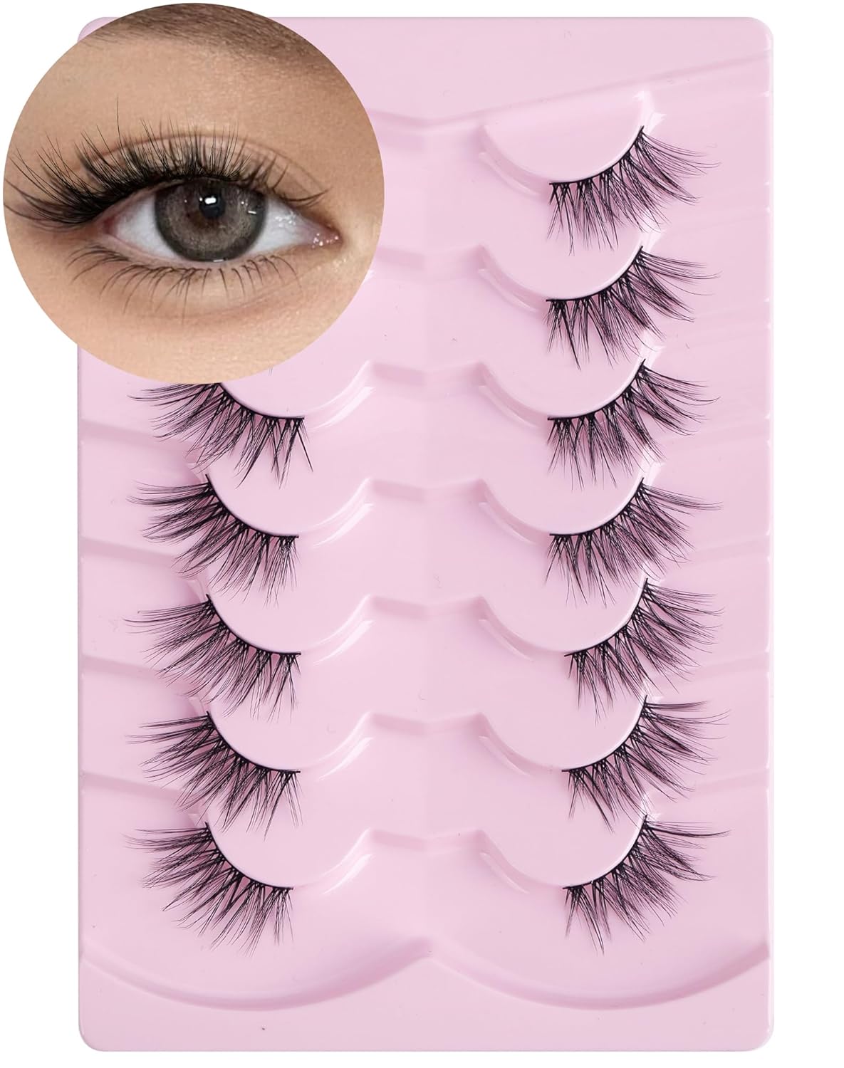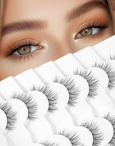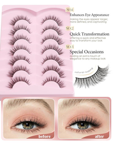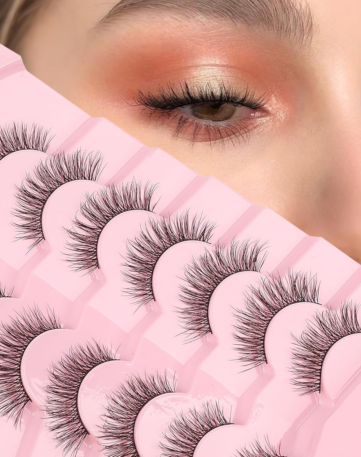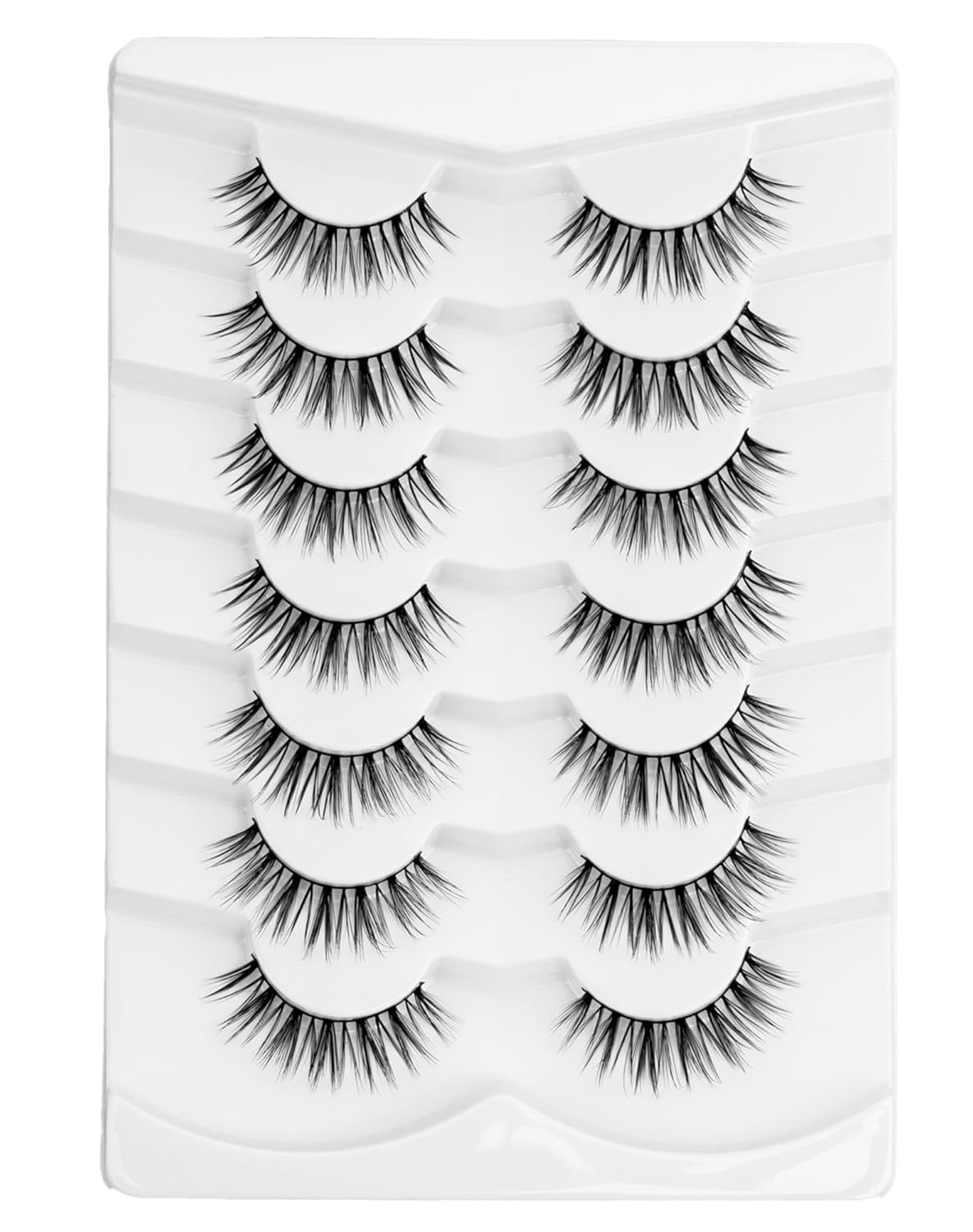 Onlyall Natural Lashes Wispy Lashes Natural Look False Eyelashes Natural Flared Eyelashes False Eye Lashes Soft Fluffy Lashes 7 Pairs D-K06, Black