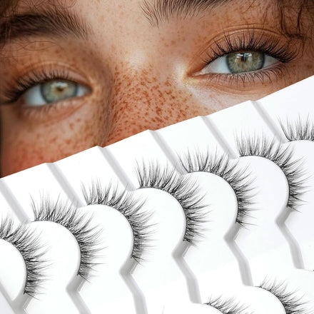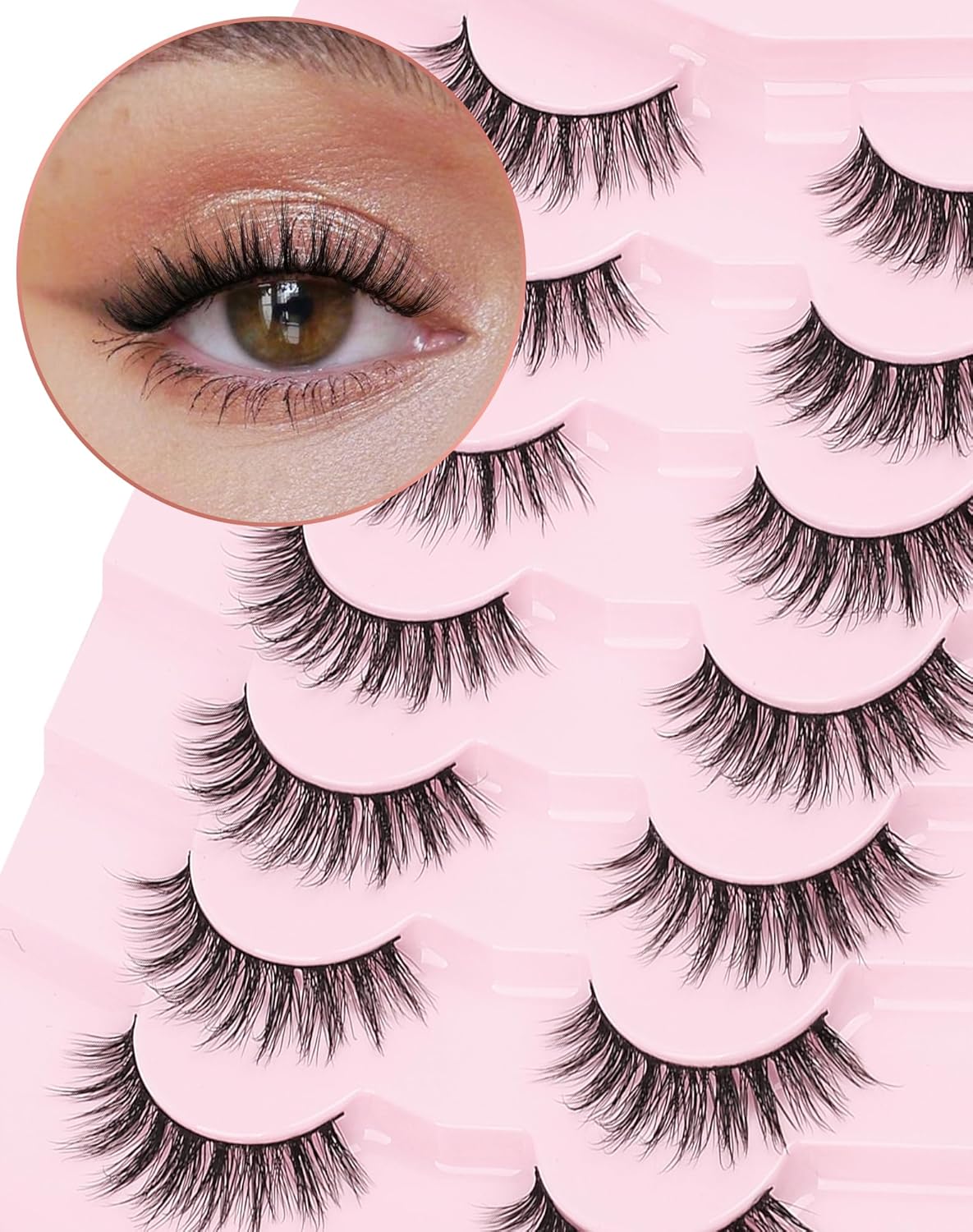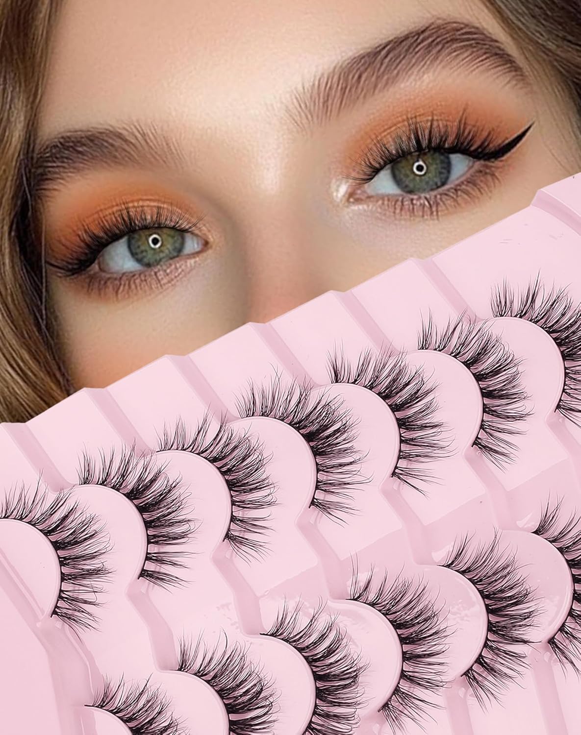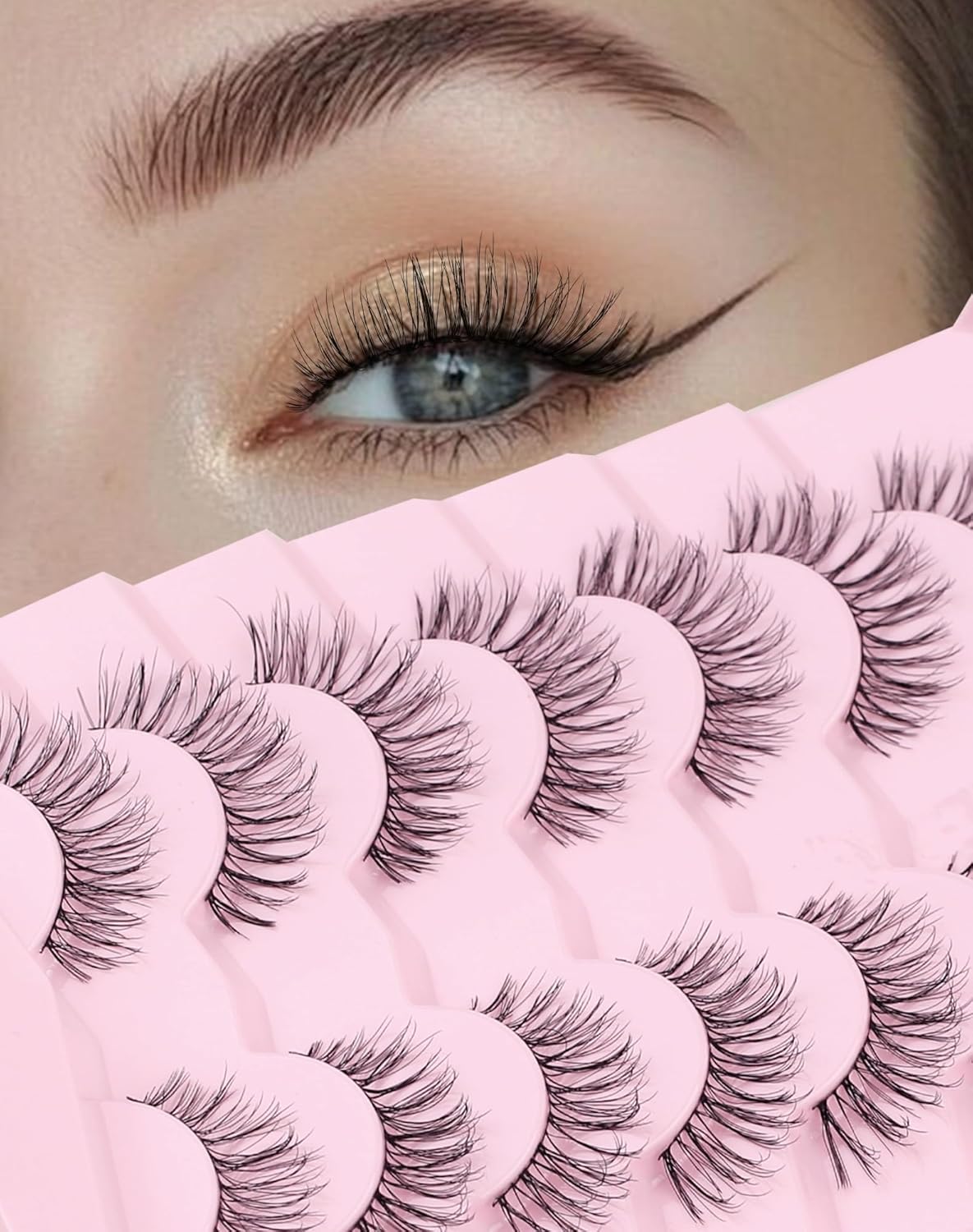 Onlyall Natural Lashes Wispy Lashes Natural Look False Eyelashes Natural Flared Eyelashes False Eye Lashes Soft Fluffy Lashes 7 Pairs D-K06, Black