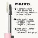 - 2-IN-1 LASH SERUM & MASCARA PRIMER – This multitasking clear formula works as a conditioning lash serum and a volumizing mascara primer in one. Wear it alone for a natural, glossy lash look or under your favorite mascara to boost its length and fullness. It goes on white and dries clear, prepping your lashes by adding thickness and grip so mascara goes on clump-free and stays put longer. Use daily (morning under mascara, night as a treatment) to enjoy both instant and long-term lash benefits.