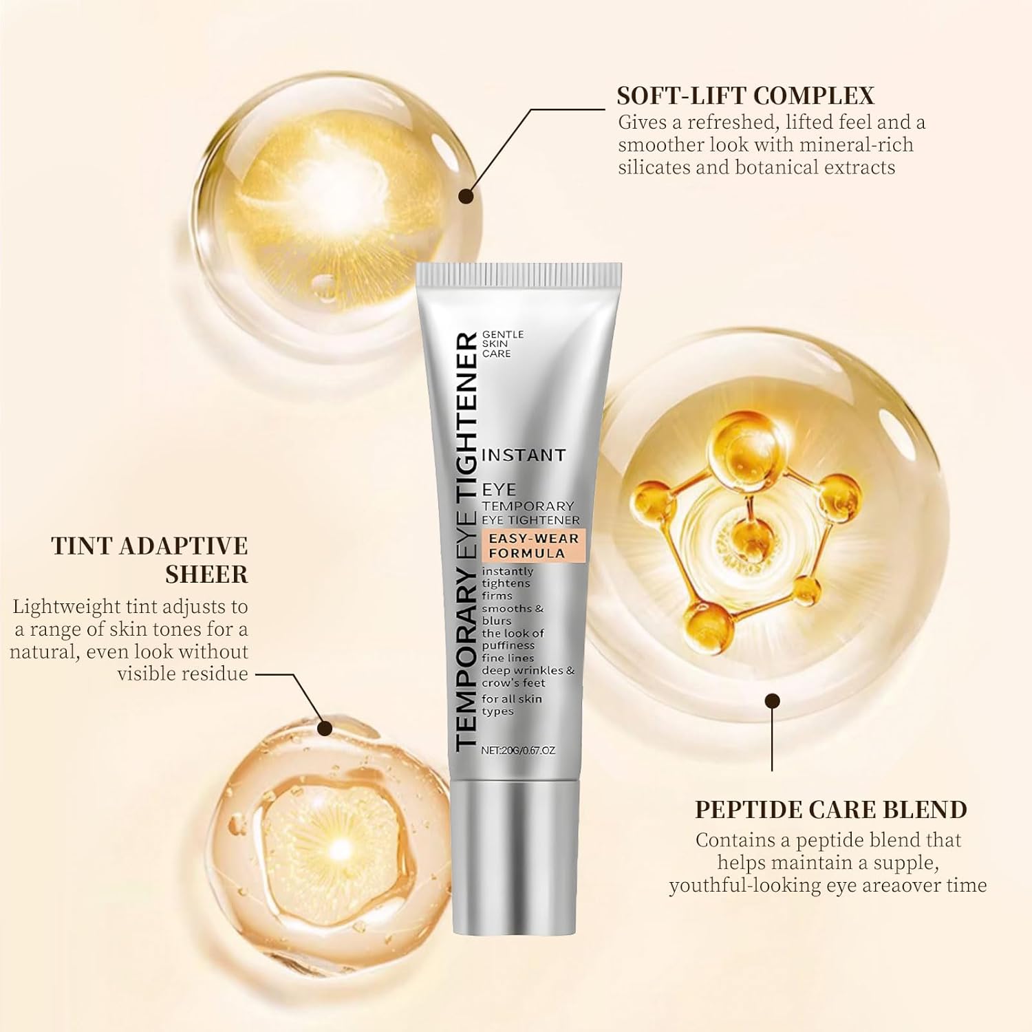 - Fast-Absorbing Formula: Lightweight eye tightener absorbs quickly, no sticky residue. Enjoy instant results that last through daily activities, enhancing eye radiance