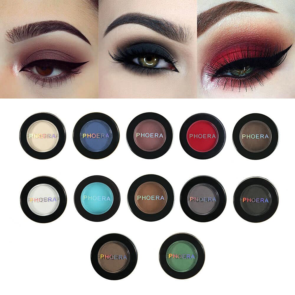 Phoera revolutionary crème-powder eyeshadow, famous for its unique bouncy texture, delivers bold matte colour in one swipe without creasing, fading or fallout. Soft and Velvety Texture Matte Finishes Rich, velvety shadows High pigment eyeshadows. Easy to apply, ultra smooth and blend able. Waterproof formula makes it stay day to night and even sweatproof, no need for maintenance. With Matte Natural Finish, this also can be easily removed with cleansing water makeup remover. Foundation face, translucent, pressed, nude, white, matt, beauty, setting, set, concealer, glitter, clear, huda, light, loose, sets, palettes, collection, match, compact, ivory, finishing, rose, smokey, pallet, pink, brown, grey, dark, transparent