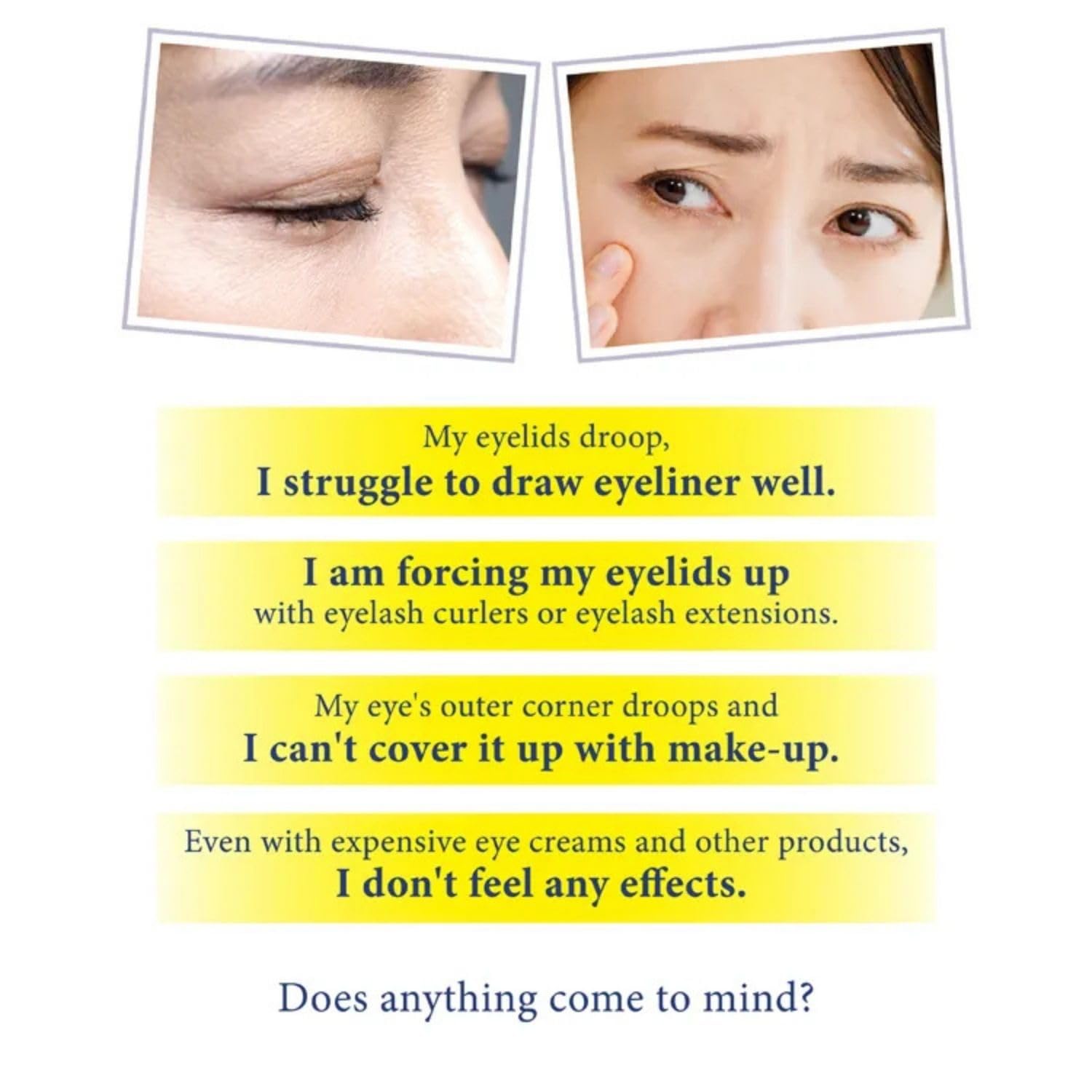 • Get rid of sagging eyelids and drooping corners of your eyes in just 30 seconds! A transparent beauty liquid that does not shine and is not noticeable.