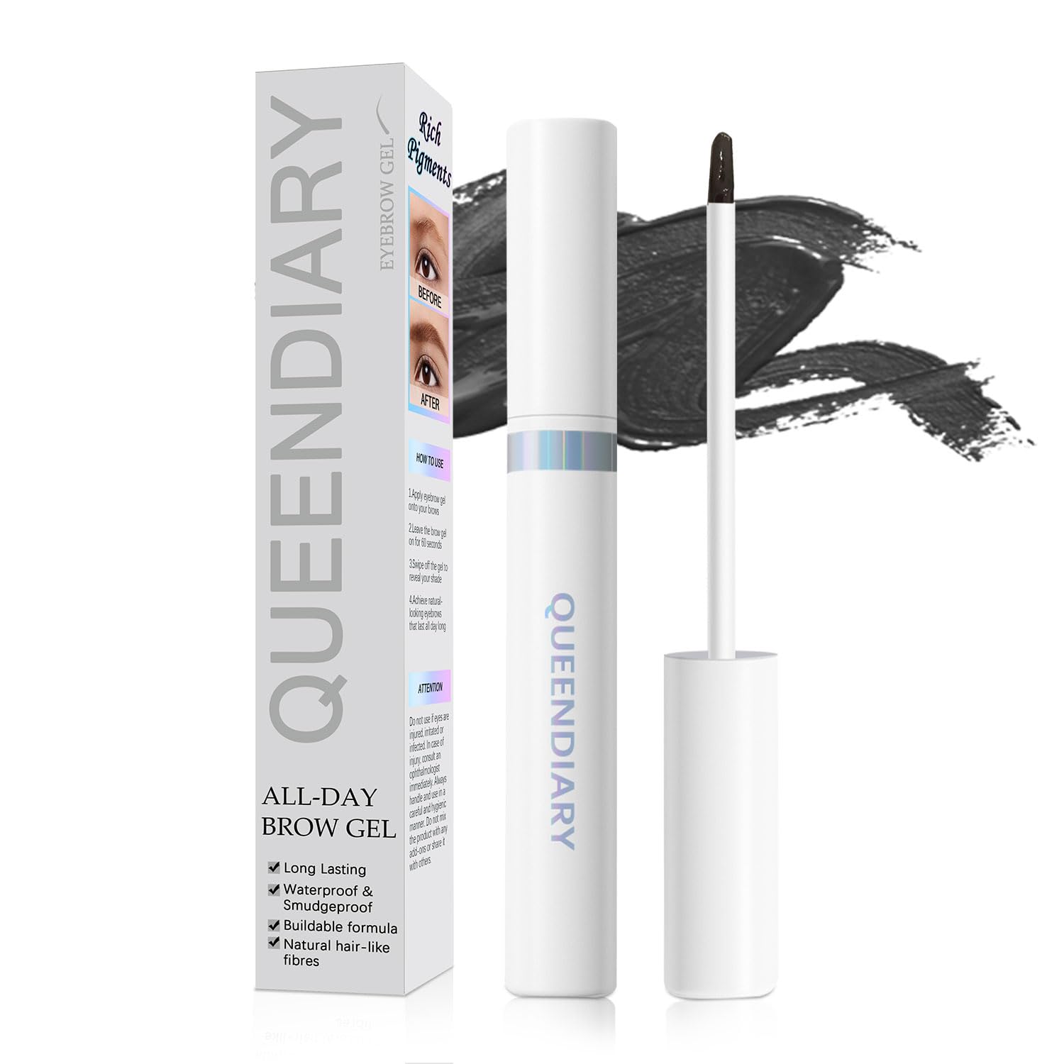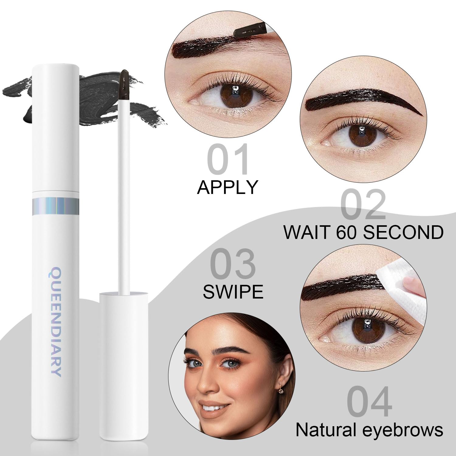 QueenDiary Eyebrow Stain Long Lasting Eyebrow Makeup Smudge-proof Eyebrow Gel Waterproof Transfer-proof Vegan Cruelty-free Eyebrow Gel (Black Brown)