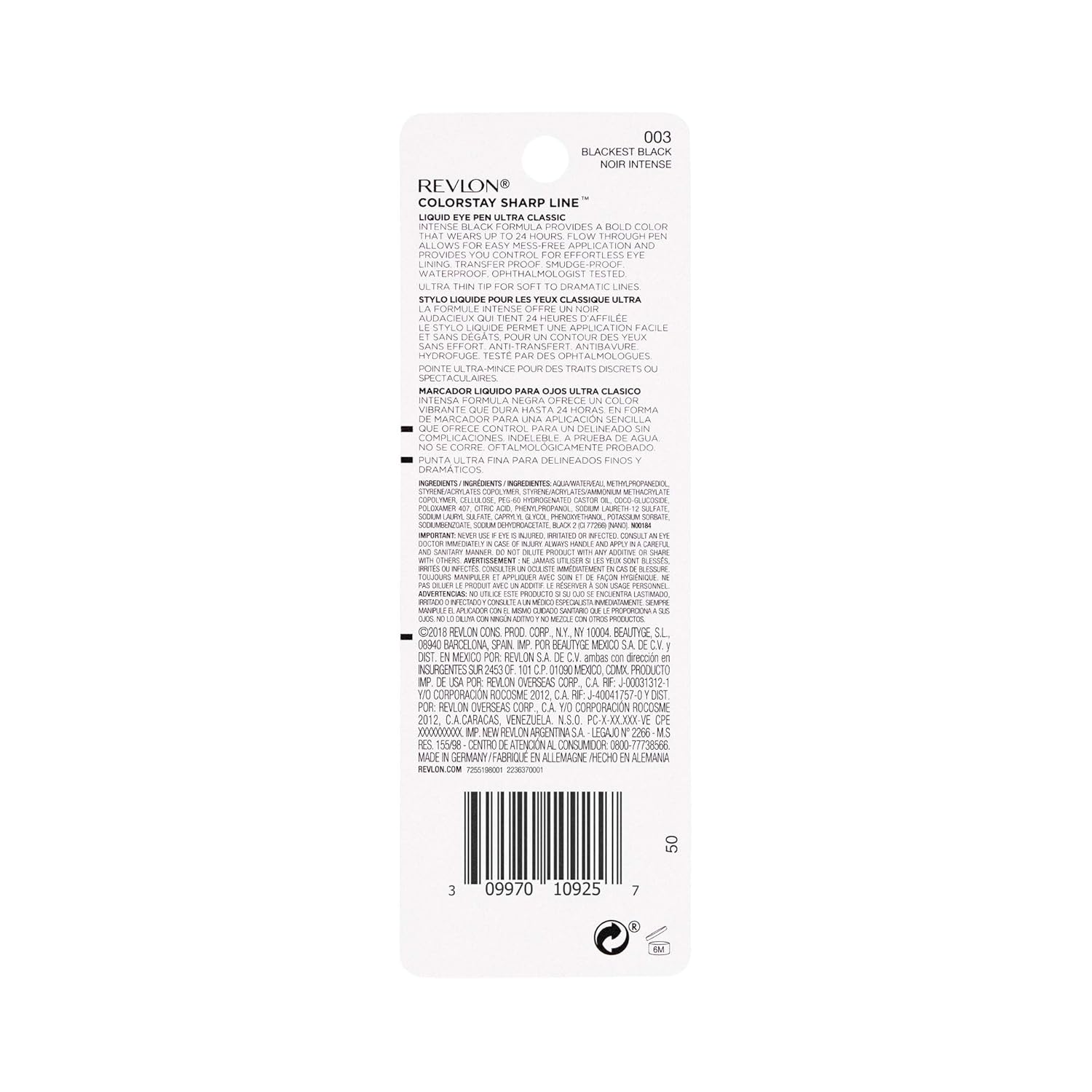 This dramatic liquid eyeliner delivers highly pigmented, ultra smooth, and intense jet black color. It's also waterproof, transfer-proof, smudge-proof, smear-proof and lasts up to 24 hours. Our 3 unique, flow-through pens make for easy, mess-free lining—no matter your look. Revlon ColorStay Sharp Line™ Liquid Eye Pen has a slim, tapered tip that offers the perfect amount of flexibility to work with the curve of your lash line; perfect for thin or thick lines. Revlon ColorStay Connect the Dots™ Liquid Eye Pen offers a ballpoint shape that allows you to dot and draw along your lashes. Revlon ColorStay Triple Edge™ Liquid Eye Pen has a specially designed angled tip that makes it easy to master a cat eye