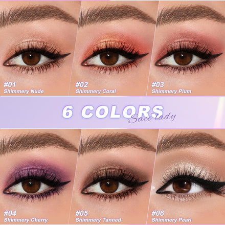 • 【SACE LADY SHIMMER PIGMENTED EYESHADOW CREAM】 Star diamond liquid eyeshadow that combines shine pearls and creamy formula to create the most mesmerizing eyes. Only takes a little bit to achieve a bright and shiny look.Perfect for daily makeup or on the go.