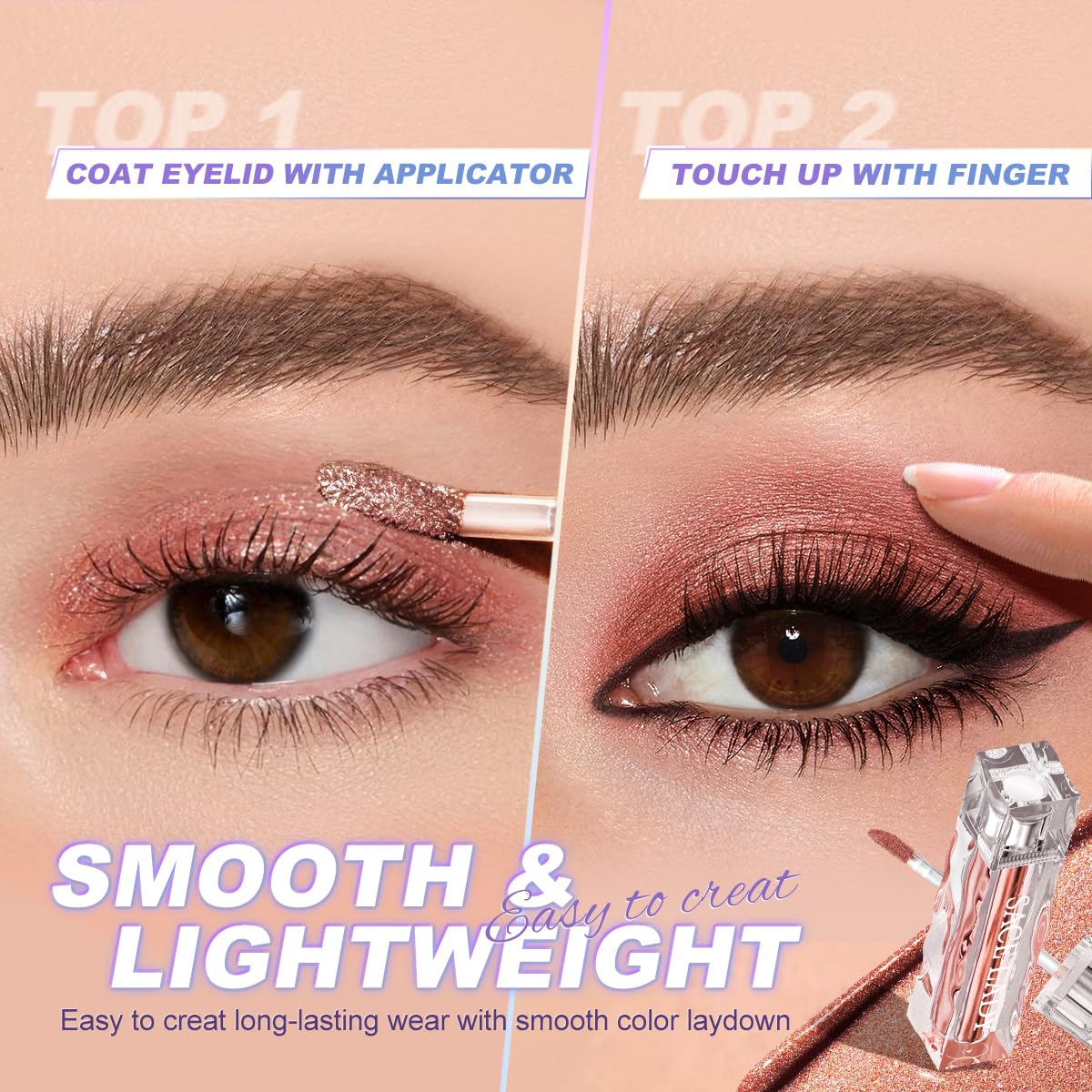 • 【LONG LASTING & SMOOTH & LIGHTWEIGHT】 Pretty silver bronzed gold sparkle liquid shadow. Blends nicely, dries down quickly and doesn't smear. Very pigmented and long lasting, stays on the whole day and looks natural. Easy to creat long wearing effect with smooth color laydown.