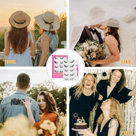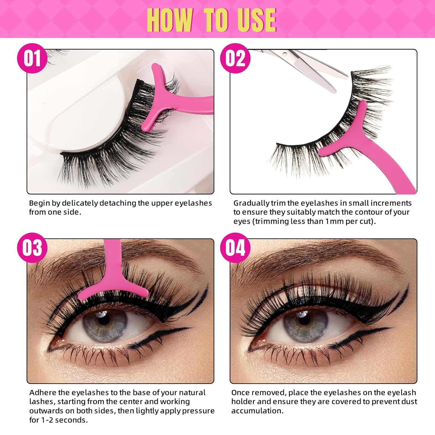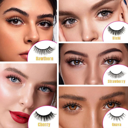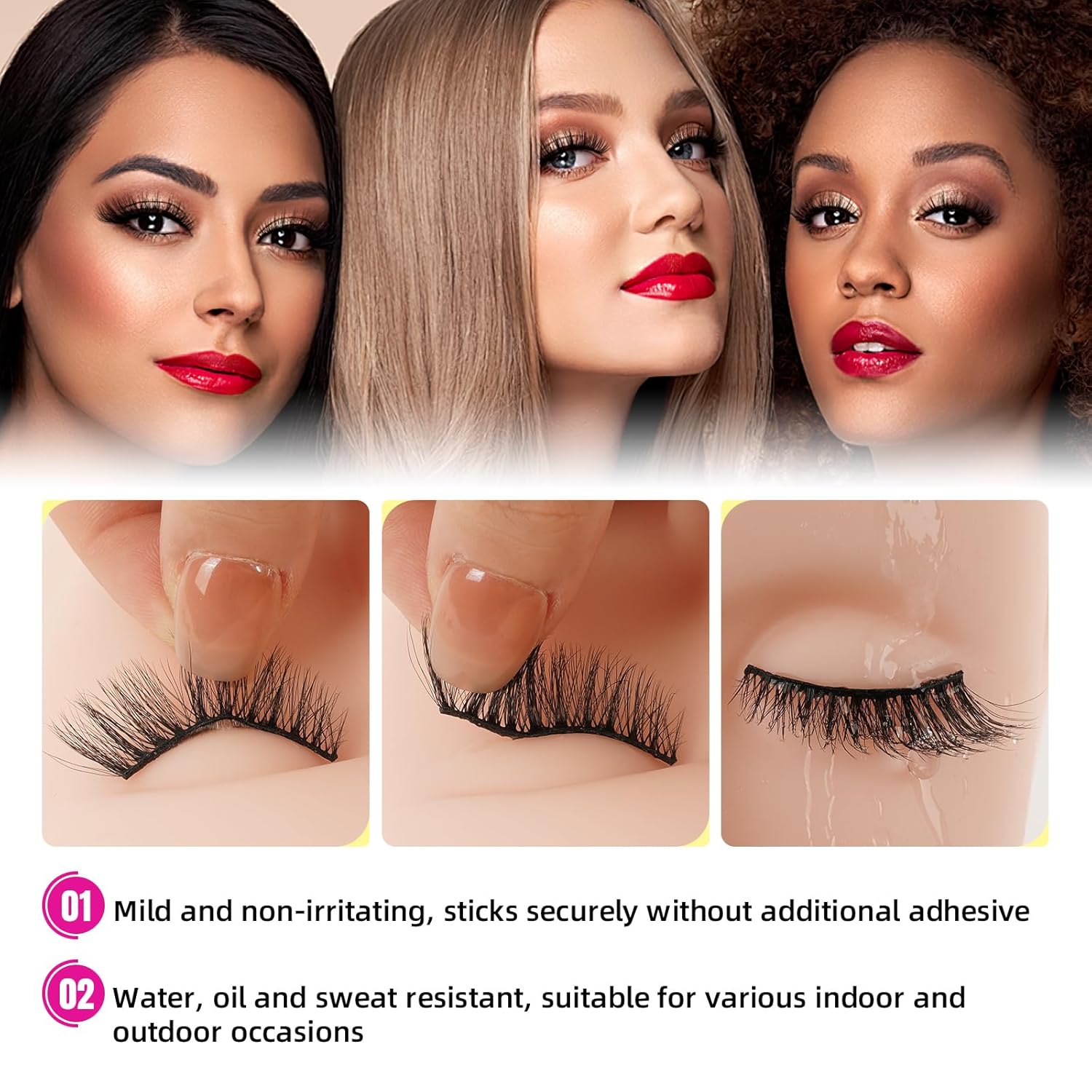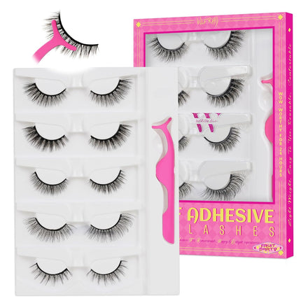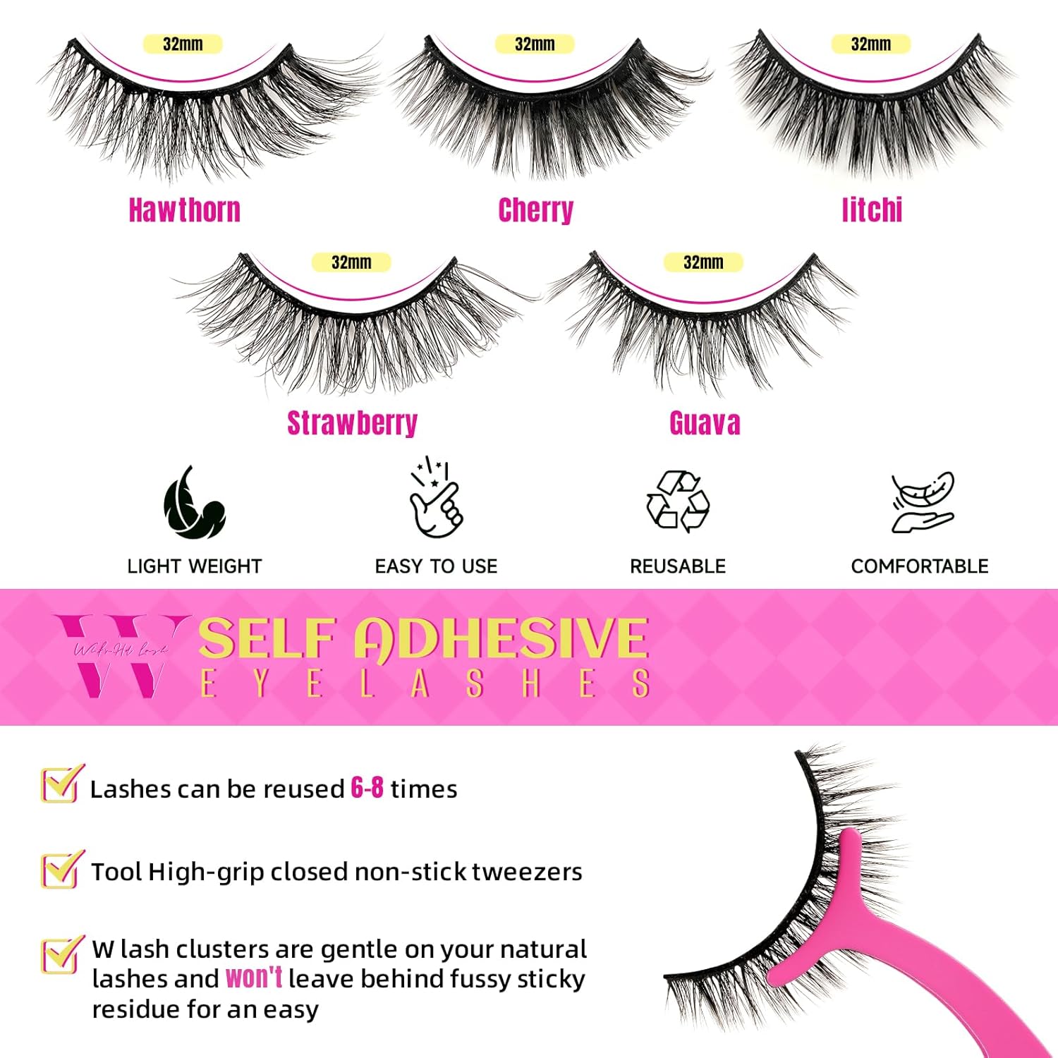 Self Adhesive Eyelashes 5 Pairs Self Sticking Lashes Reusable with Lash Tweezers False Eyelashes Natural No Glue Needed Just One Step at Home (Mix)