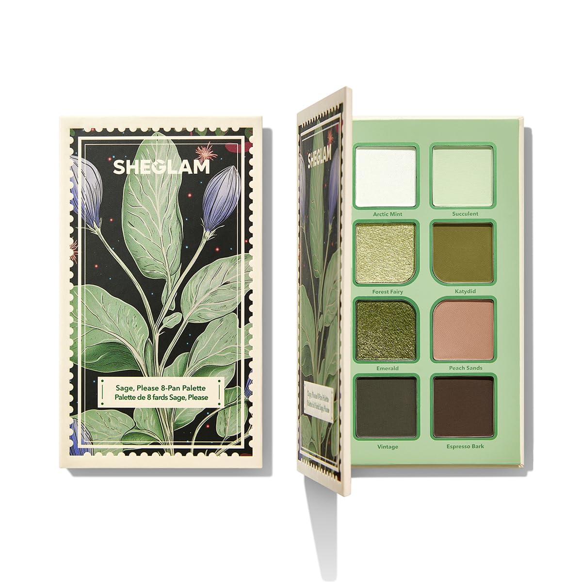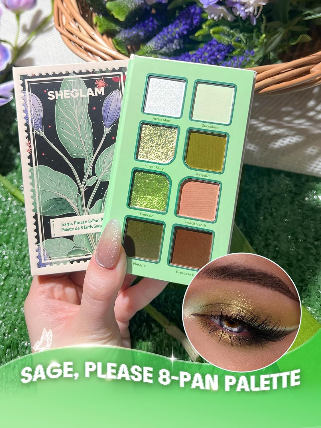 SHEGLAM Sage, Please 8-Pan Palette Matte&Shimmer Eyeshadow,Long Lasting Blendable Shades,Naturing-Looking,Waterproof Cool Eye Shadow Makeup Palette