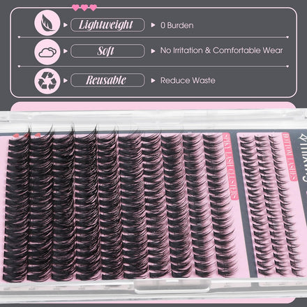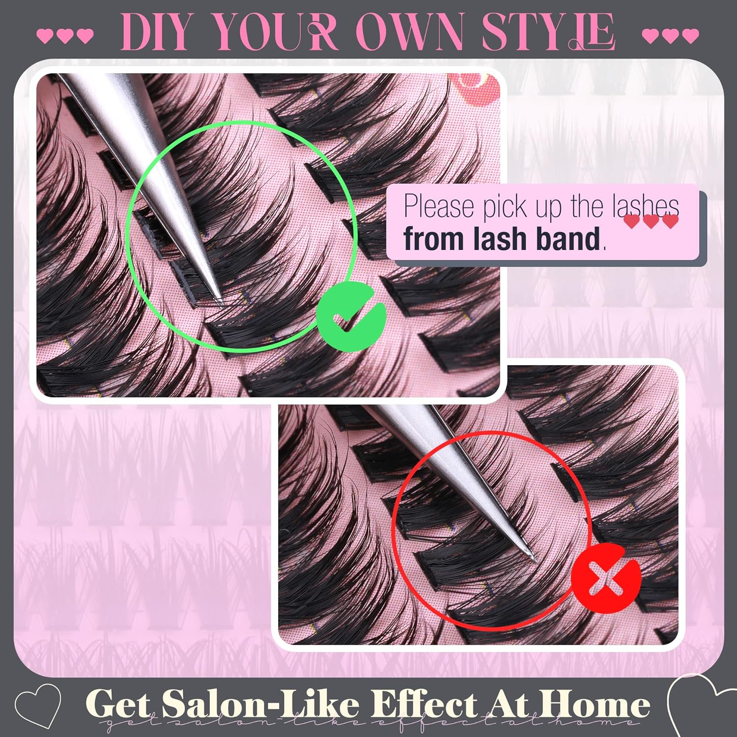 - Soft & Weightless & Comfortable: Still torn between beauty and comfort? Donāt worryāour thick cluster eyelash extensions solve this dilemma for you! Crafted from upgraded fibers, each spiky lash extension is very soft, and the lash band is more flexible, ensuring no poking or irritation to your eyes during wear. And the DIY eyelash clusters are as light as a feather, so they wonāt burden your eyes. Our lashes give you a cloud-like, weightless and comfortable wearing experience.