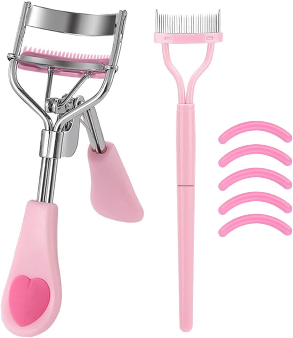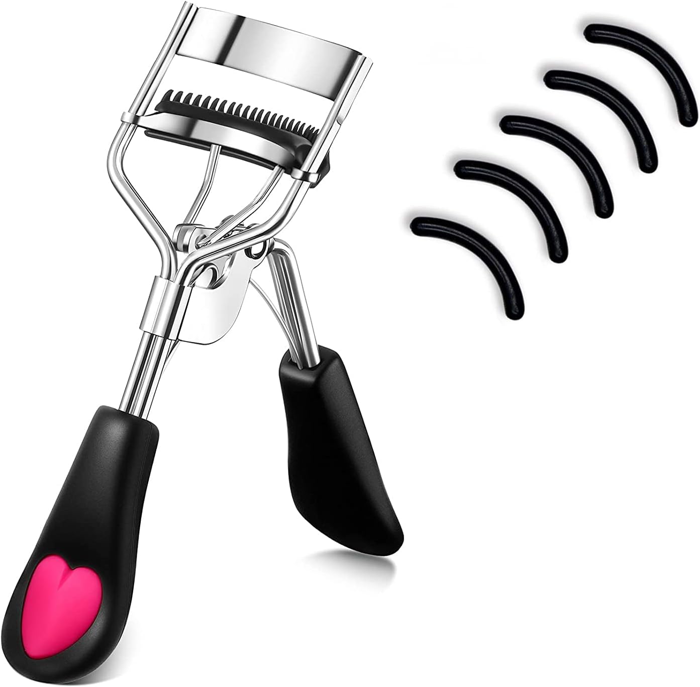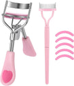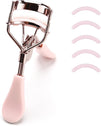 Stainless Steel Eyelash Curler with Built-in Comb Pinch Pain-Free Suitable for Any Eye Shapes and Sizes, with 5 Silicone Refill Pads (Light Pink)
