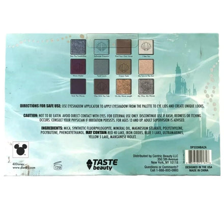 Taste Beauty Disney The Little Mermaid 12-Shade Eyeshadow Palette, Underwater-Themed Colors with Mirror, Shell-Embossed Shimmers, For Ages 13 and Up