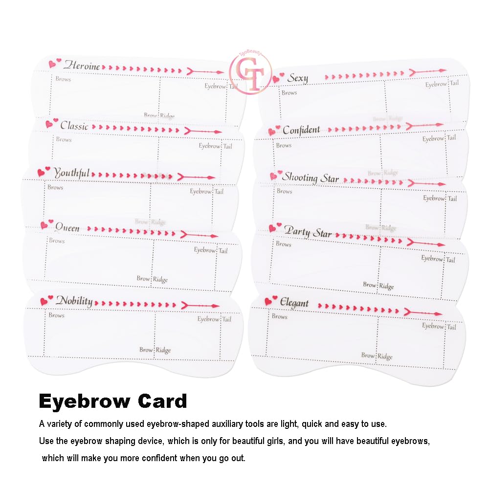 TgoBeauty 10pcs/set Eyebrow Stamp Stencil Kit Eyebrow Stencils Reusable Silicone Eyebrow Shape Makeup Aid Balance Template Makeup Measurement Tattoo Ruler (10pcs/set)