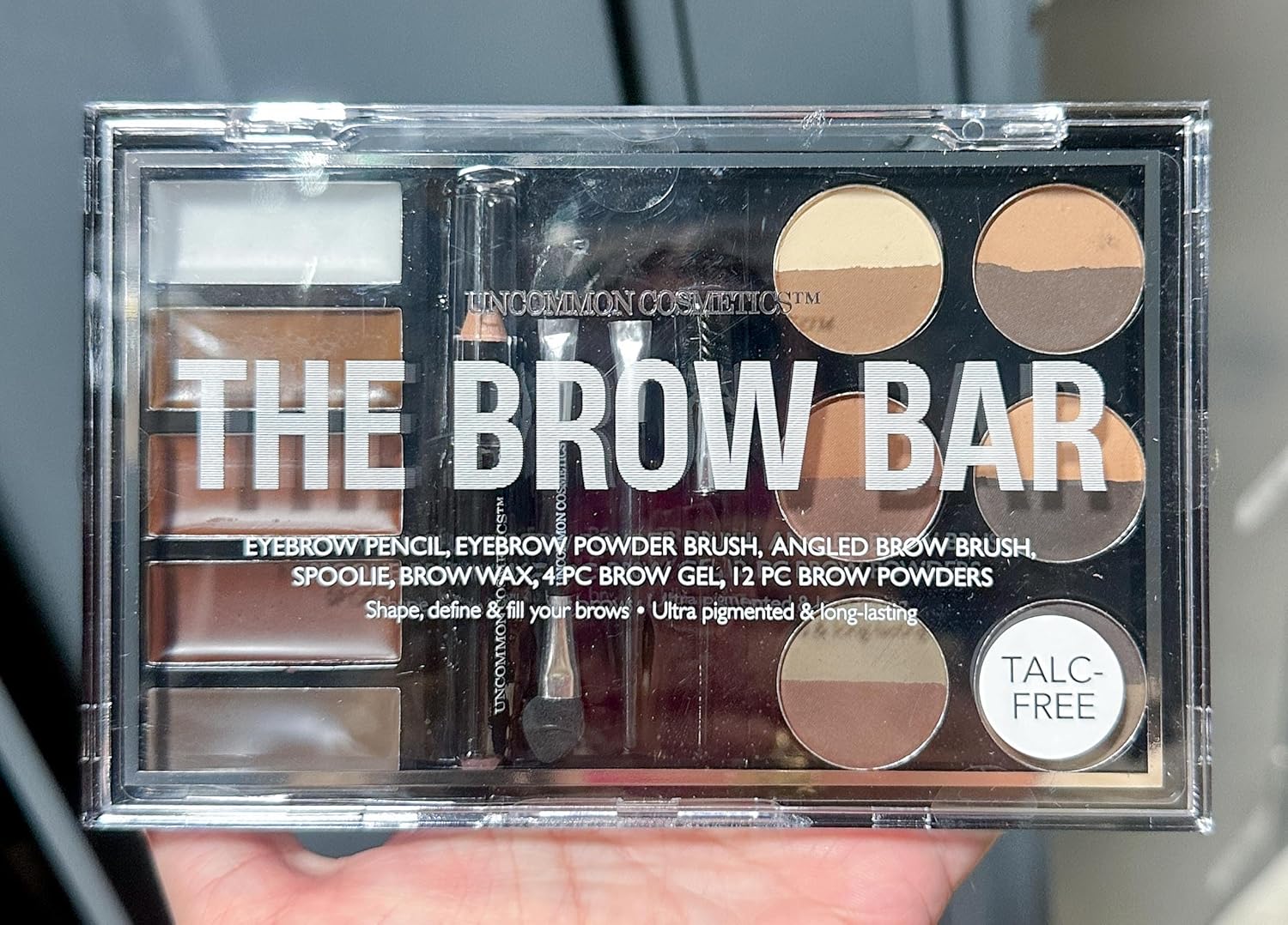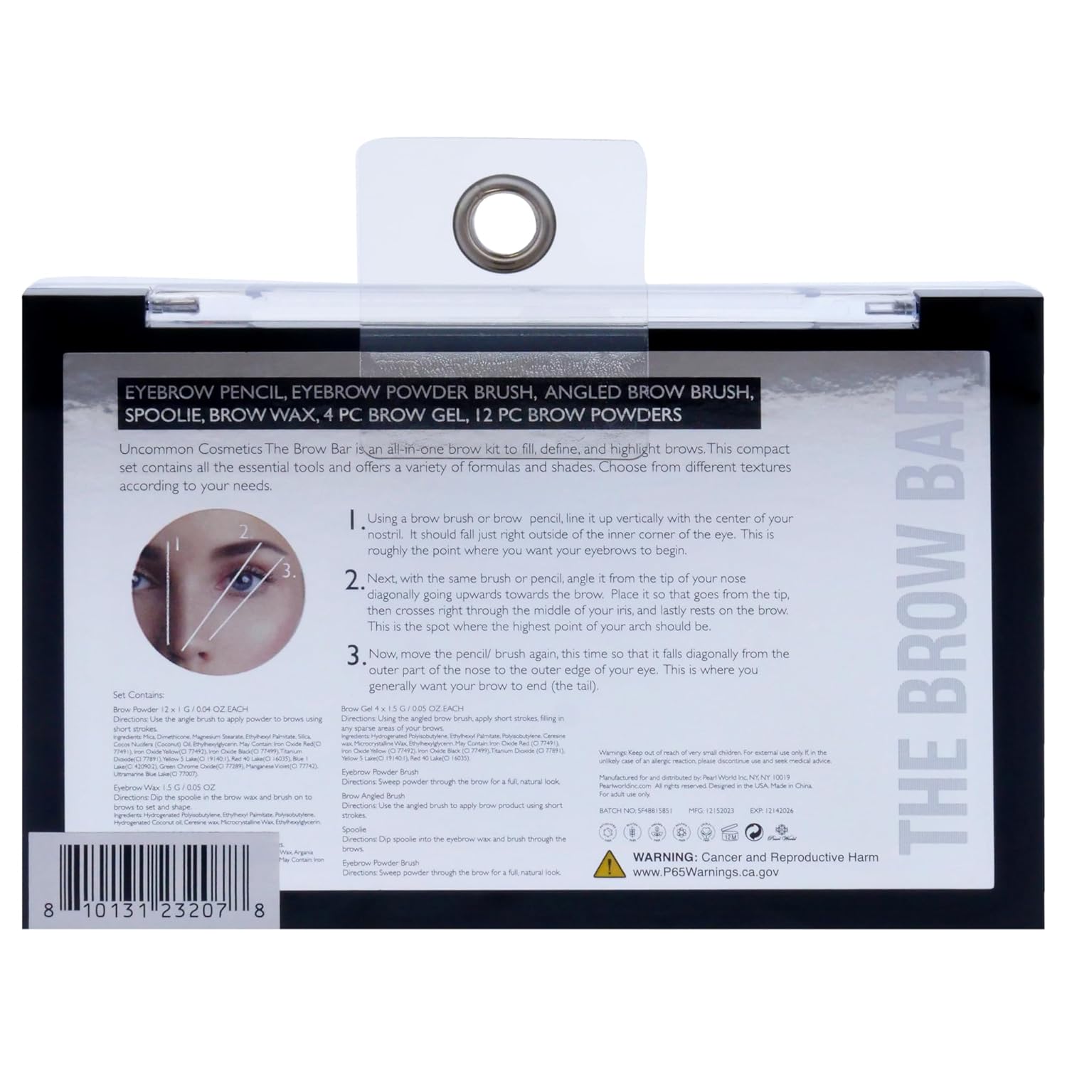 Introducing 'The Brow Bar' from Uncommon Cosmetics, the all-in-one brow kit promising to revolutionize your brow game. This comprehensive eyebrow kit offers a variety of formulas and shades, making it the ideal companion for everyone, regardless of skin tone or brow preference. It houses everything you need for impeccably groomed brows, providing a bouquet of essential tools and products that help to shape, define, and fill brows to perfection. This kit is not just a collection of products, but a comprehensive solution for all your eyebrow needs. Whether you're a beginner just starting or a seasoned pro looking for an upgrade, The Brow Bar from Uncommon Cosmetics is a must-have addition to your makeup routine.