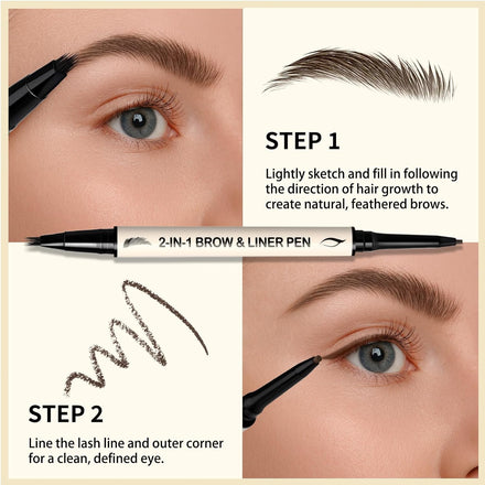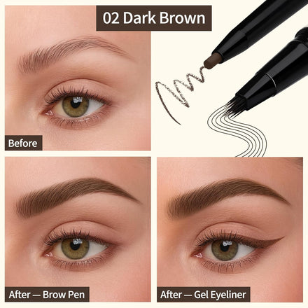 - ➤ 2-in-1 Brow & Eye Definer : Double the function, half the effort. One end features a square-angled brush liquid brow brush for natural hair-like strokes, while the other offers a 1.5mm ultra-fine gel eyeliner pencil for precise, smooth eye definition.