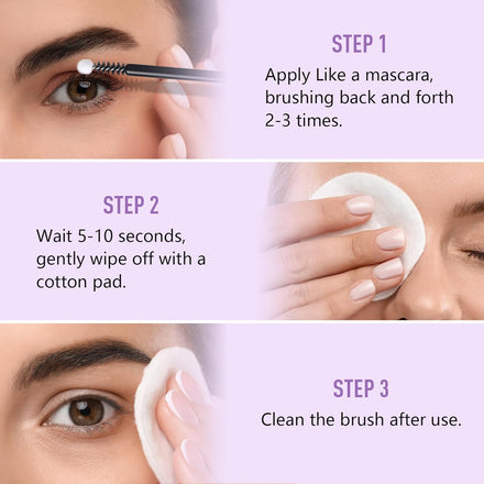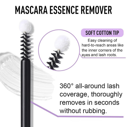 • 【Removal Steps】1. Use the brush to evenly apply the remover to your lashes, brushing back and forth 2–3 times. Gently use a cotton swab to coat the lash roots and inner corner for full coverage. 2. Let sit for 5–10 seconds until the mascara fully dissolves, then gently wipe off with a clean cotton pad. 3. Use a clean cotton pad to wipe off any residue from the brush to avoid contaminating unused remover.