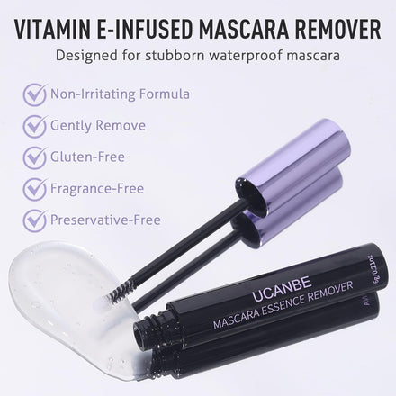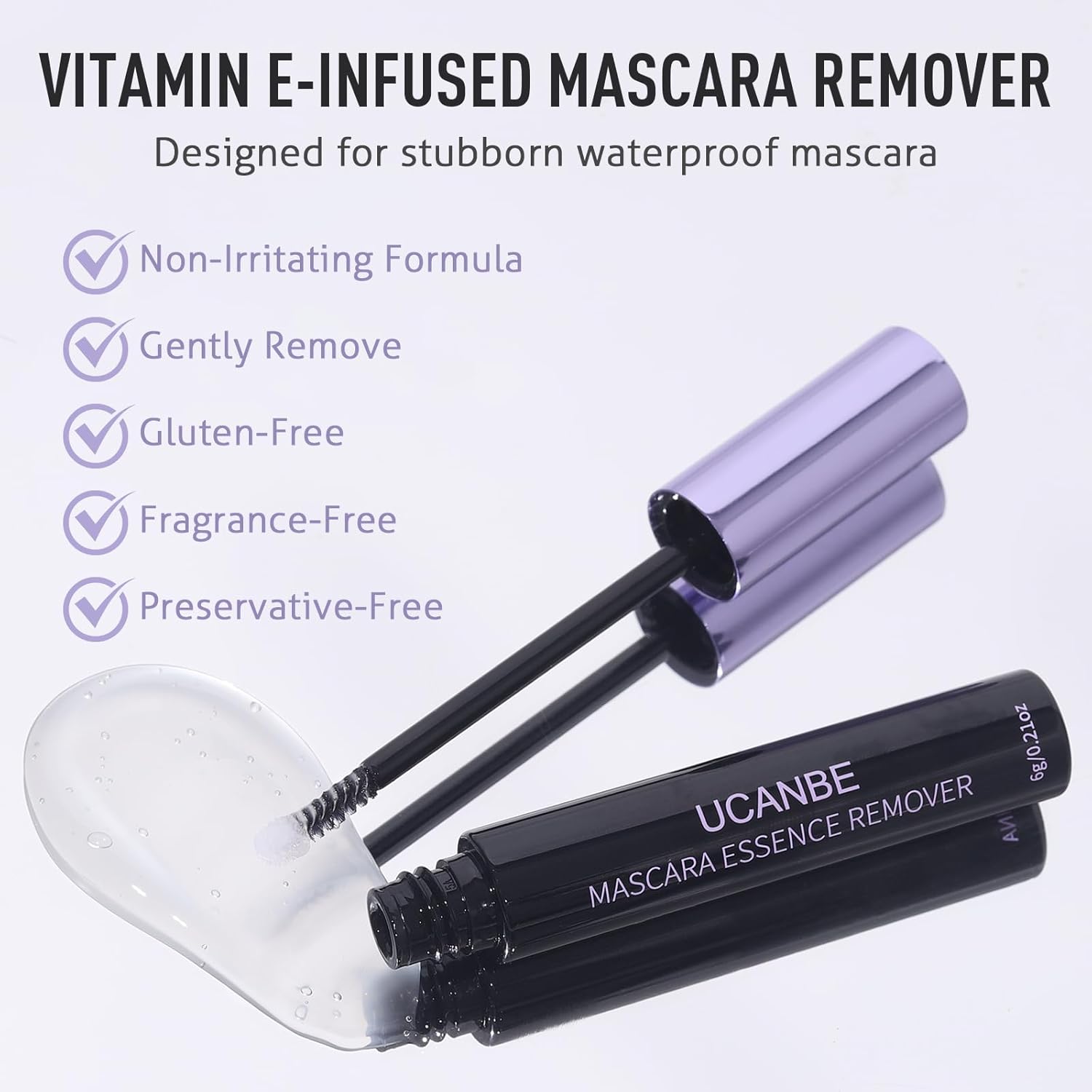 UCANBE Mascara & Cluster Lash Glue Remover, Nourishing Non-Irritating Lash Cleanser with Vitamin E for Real & False Eyelashes, Glides Off Waterproof Eye Makeup Effortlessly, Ideal for Sensitive Skin