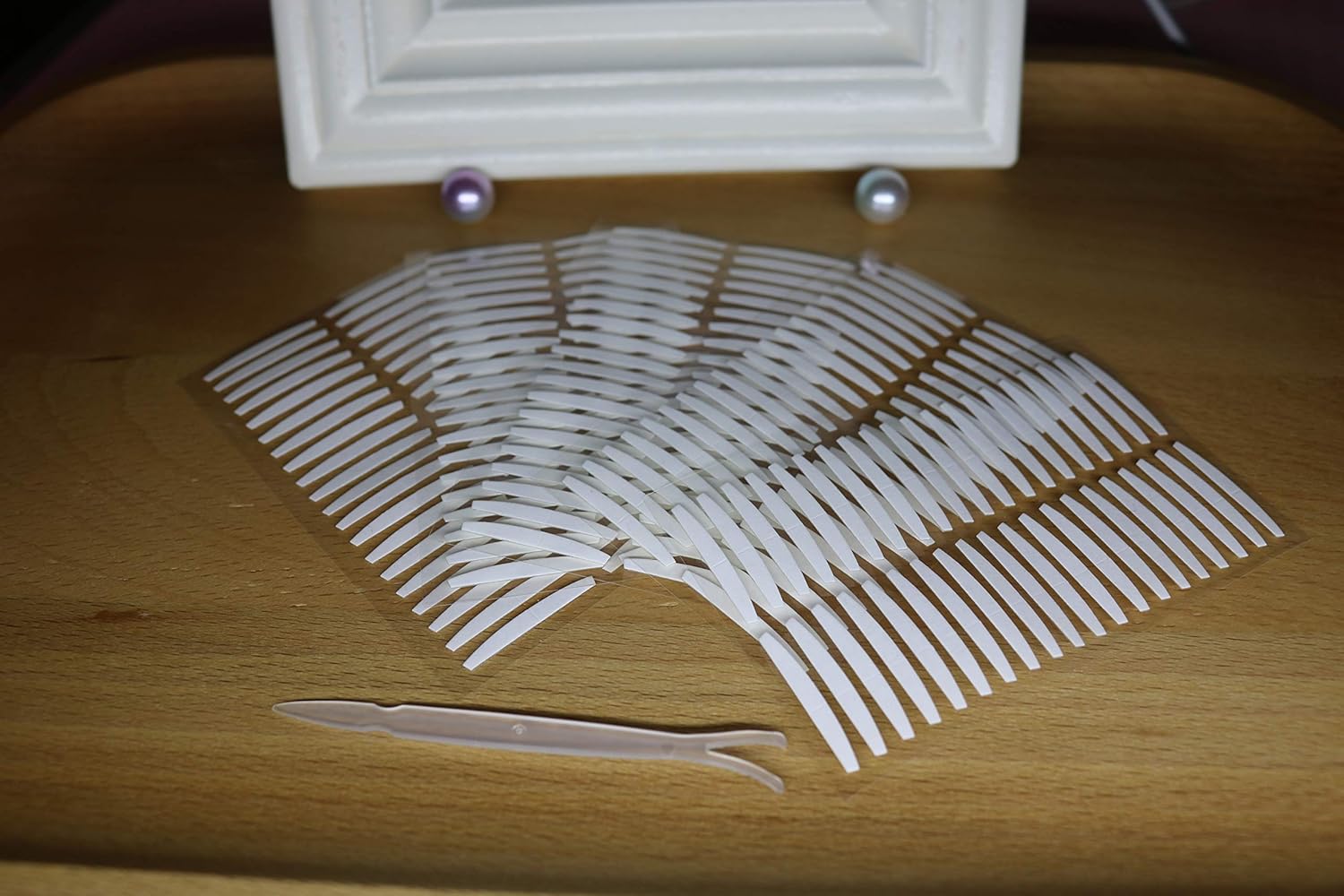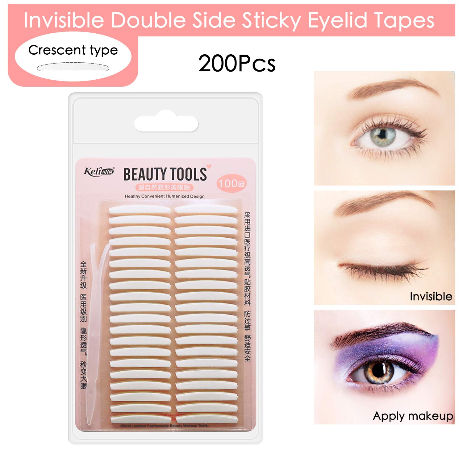 The eyelid tapes are disposable medical-use adhesive fiber, if the same eyelid tapes are reused or oil, makeup and moisturizers is on your eyelid, its stickness will be greatly reduced.So please throw the tape away when you take it off, then please get new eyelid tapes strip to put them on. It is "invisible" when you wear the tape on the right place Feature: 1. Invisible, Breathable,Waterproof, good adhesive 2. Medical-use adhesive fiber 3. Double side sticky eyelid stickers 4. Easy to create deep and natural double eyelid 5. Instant Eyelid Lift Without Surgery 6. Makes eyes more beautiful and eyes seem rounder and larger 7. Highly recommendable especially to the customers who have hooded, droopy, uneven, or mono-eyelids Package including: 100 Pairs medium eyelid tape 1 x plastic fork 1 x English Instruction