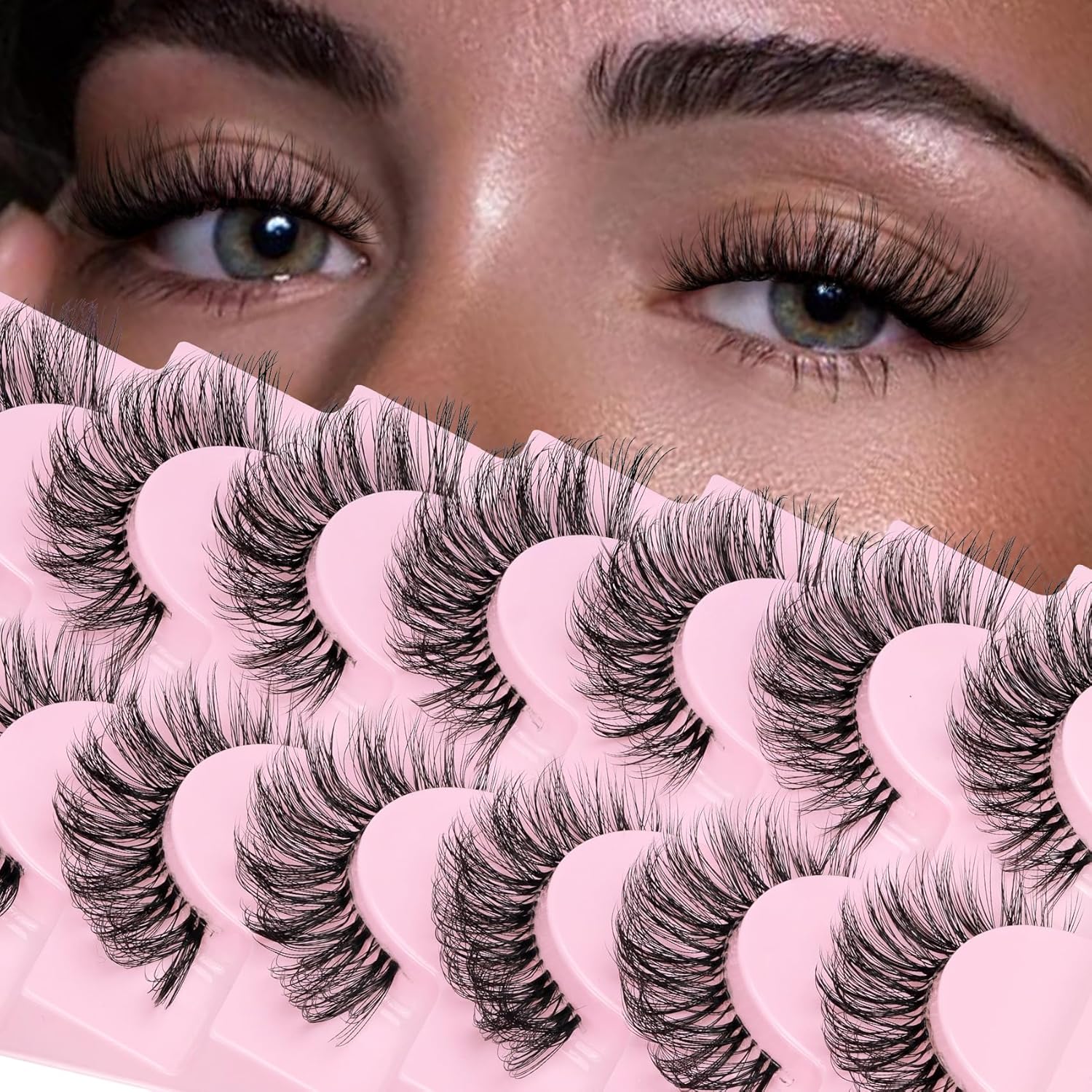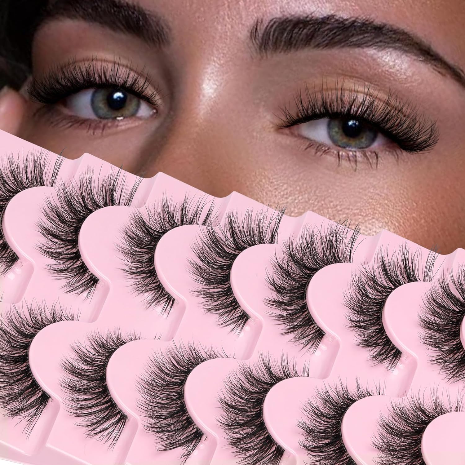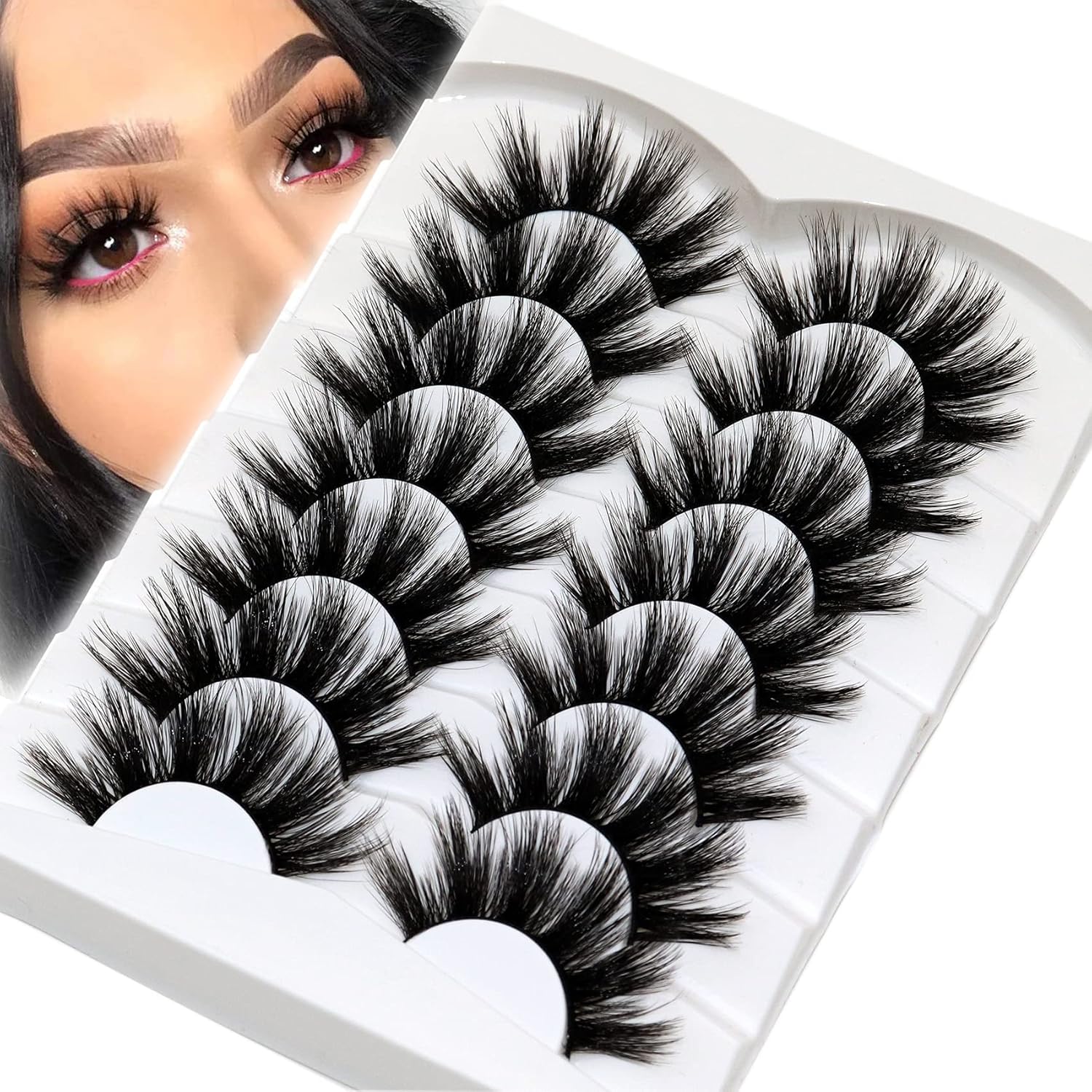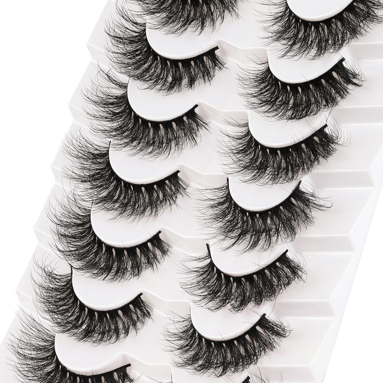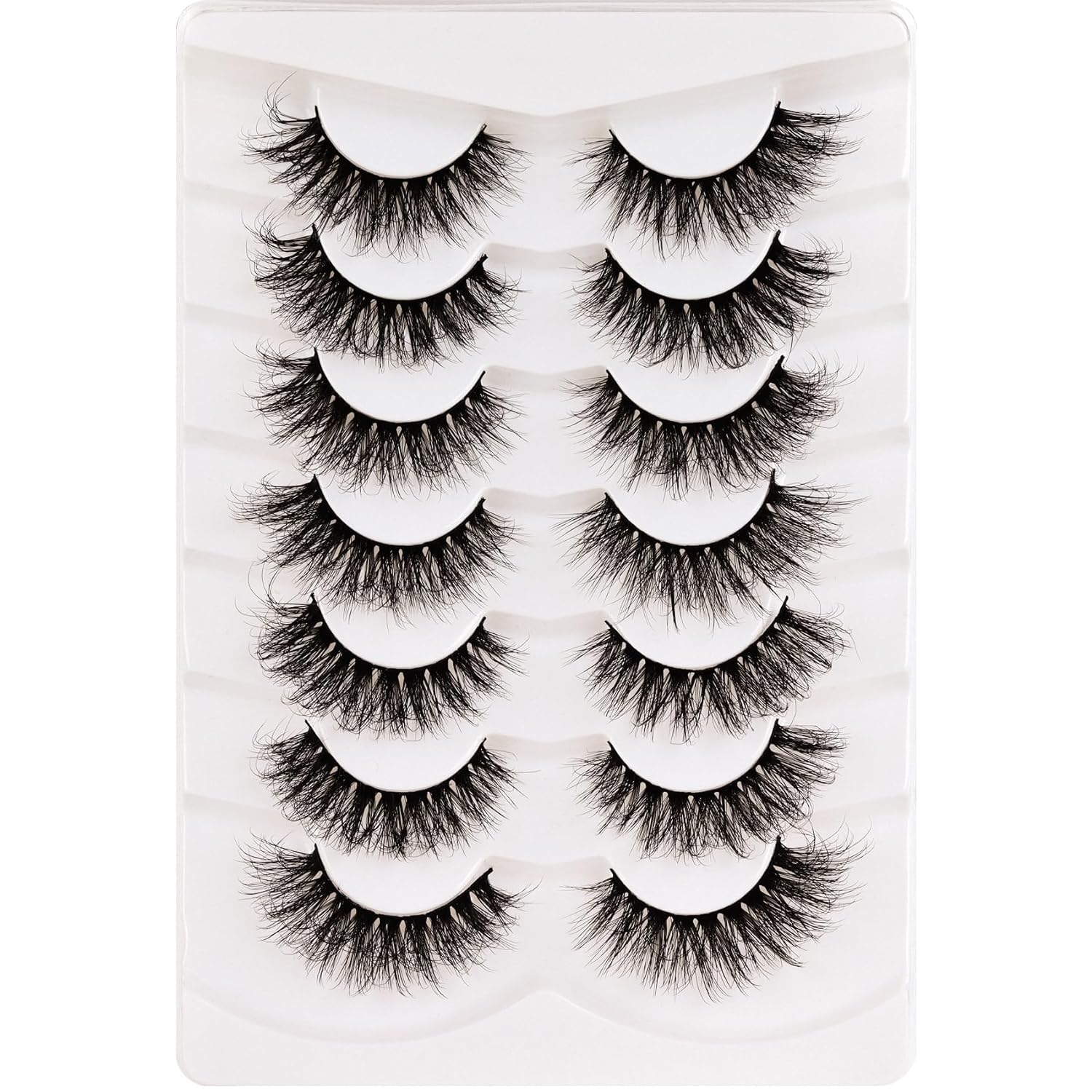Veleasha False Eyelashes Wispy Faux Mink Lashes Fluffy Handmade Fake Eyelashes Natural Look 7 Pairs Pack Luxury Cat Eye Lashes (804)