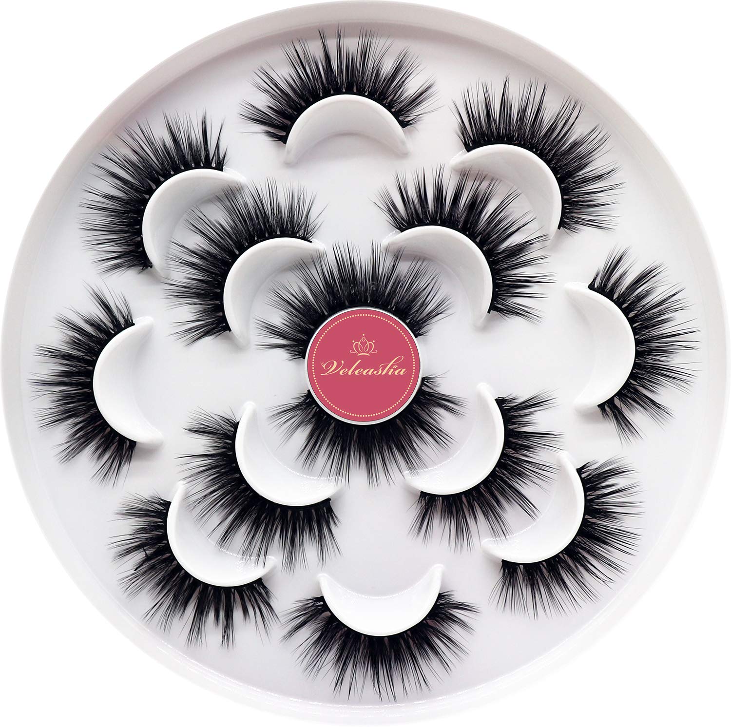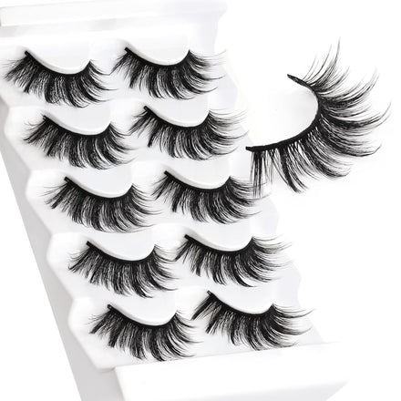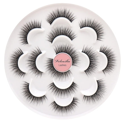 Veleasha Lashes Wispy False Eyelashes 100% Handmade Eyelashes Natural Look Fake Lashes Lightweight Lashes with Soft Clear Band 5 Pairs Pack (G2)
