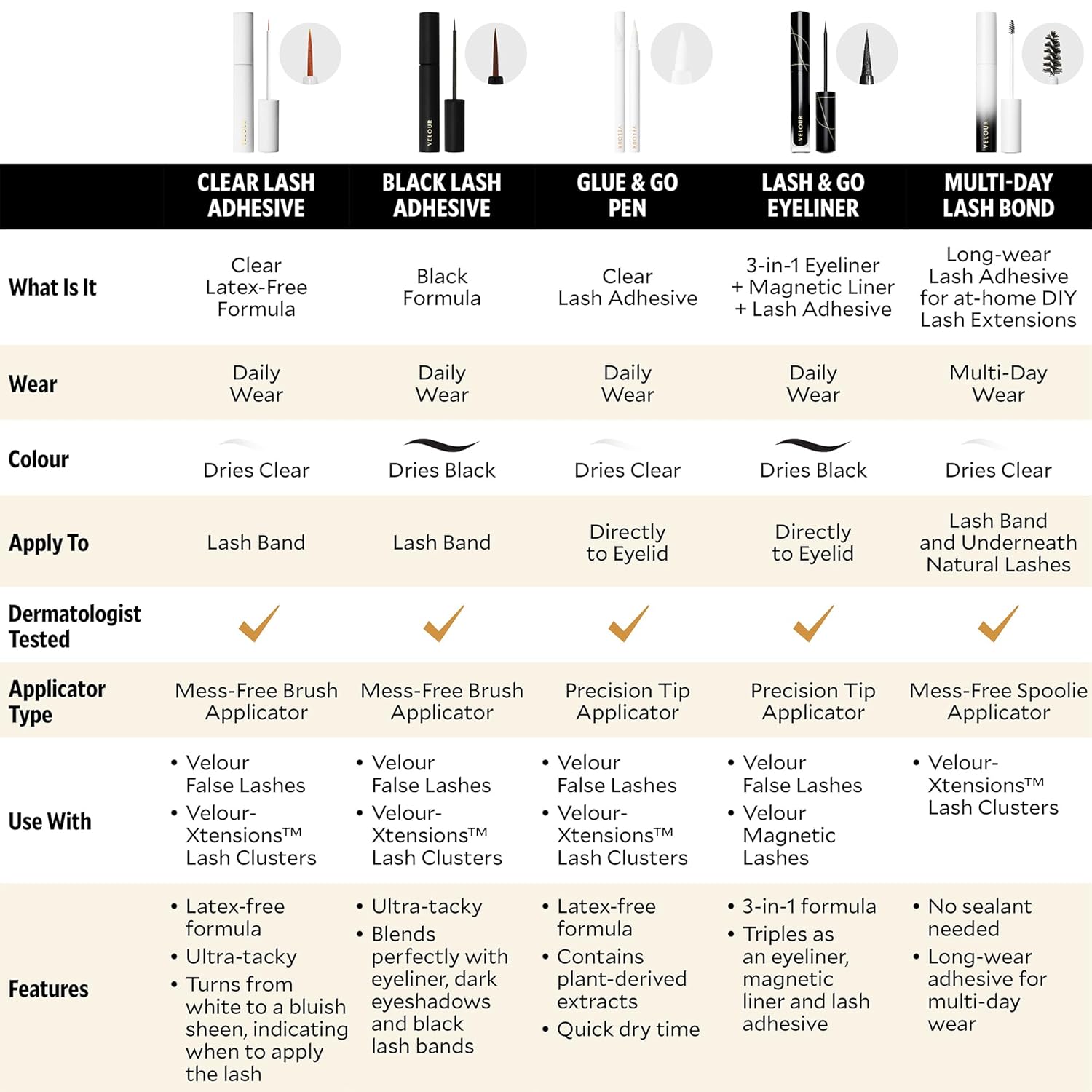 - HOW TO USE THIS LASH GLUE: Once you've measured and trimmed your lashes as needed - Using Velour Lash Adhesive, brush a thin layer of lash glue to the lash band. Add a little extra to the corners for extra hold. Proceed with false lash application