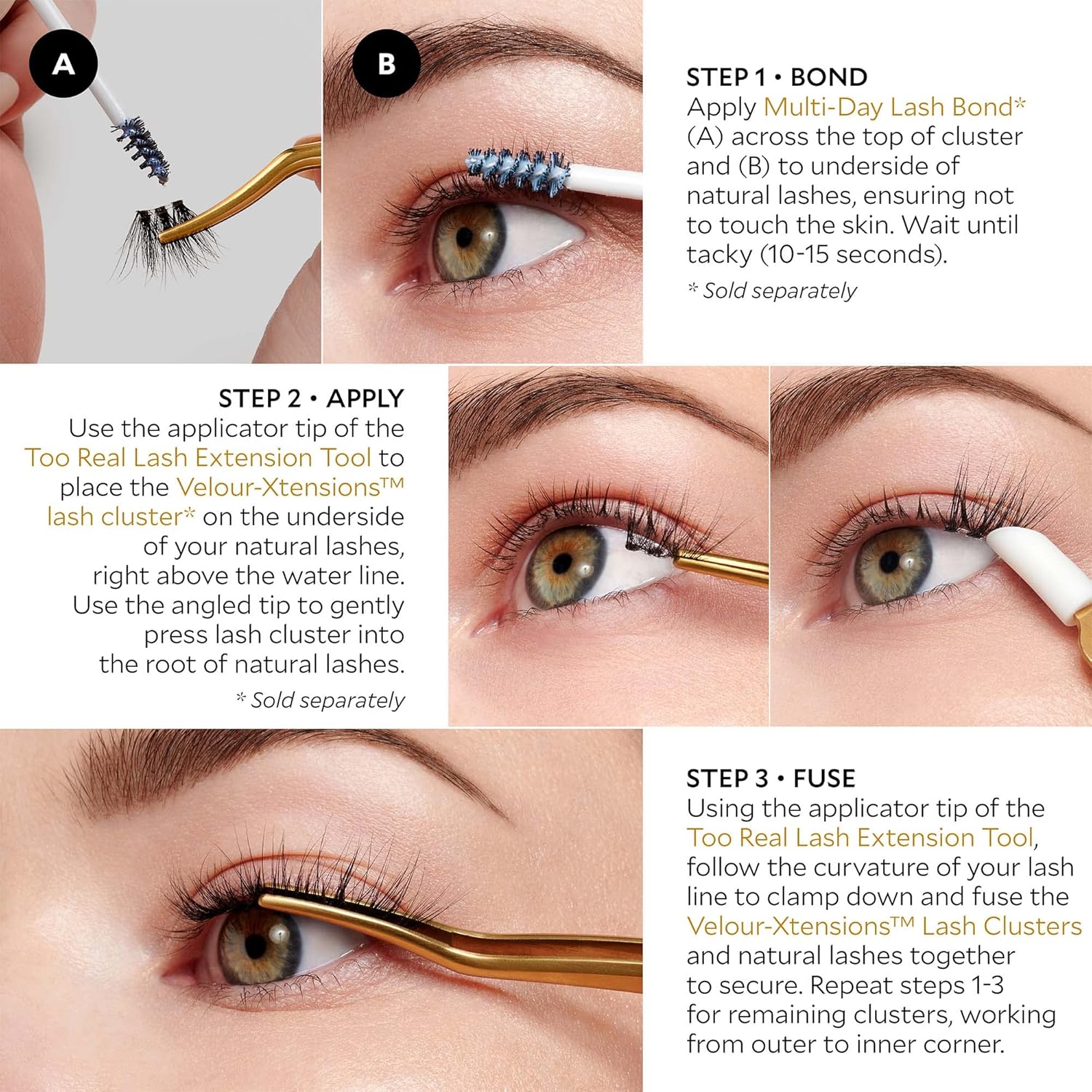 • Lash extensions you can do in minutes! Skip the salon and save time, fuss and expense with the Too Real Lash Extension Tool.