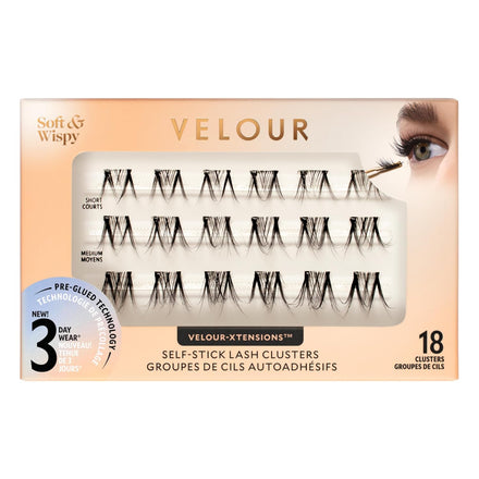 Velour-Xtensions™ Self-Stick Lash Clusters Kit, Self Adhesive Eyelashes with 12 Lash Cluster and Lash Applicator, New No Glue Technology for Lightweight Natural Look at Home