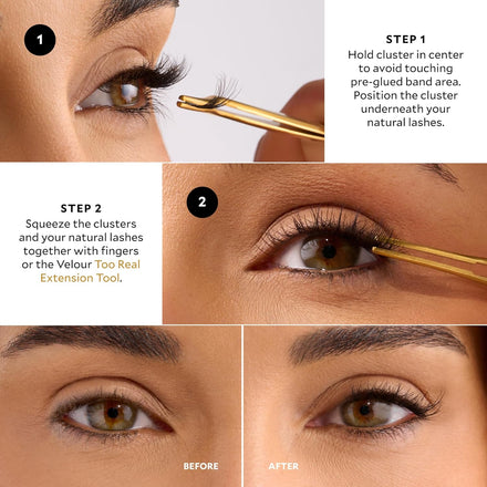 • BEGINNER-FRIENDLY APPLICATION: Apply clusters under clean lashes from outer to inner eye. Pinch gently to lock them into place with your fingers or lash tool.