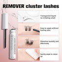 - Apply eyelash remover to the base of the cluster lashes. Wait 30 seconds for the eyelash glue to dissolve. Then use a cotton swab or mascara brush to brush off the clusters. Finally rinse your lashes with lash cleanser and water.