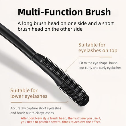 - 【Multi-Function Brush】Multi-function brush has a long brush head on one side and a short brush head on the other side, the long brush head can coat upper lashes and the short brush head can coat lower lashes or sparse lashes short lashes.Attention:New style brush head, the first time you use it, you need to practice several times to achieve the effect.