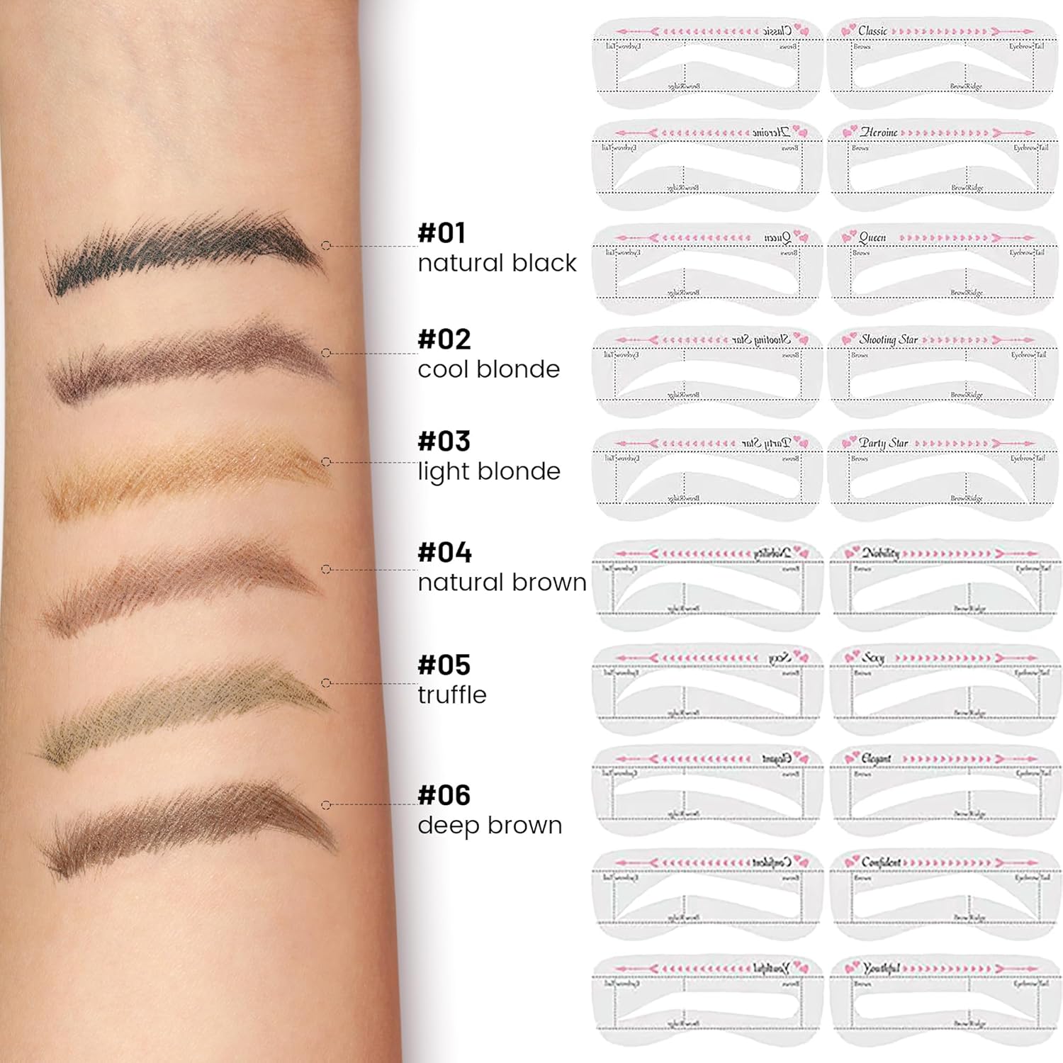 - 6Color Option & 10 Eyebrow Stamp - Our eyebrow make up kit have introduced a more user-friendly design. Considering that each user's situation is different, this kit is equipped with color option and 20 shape select, allowing users to choice the most suitable shape according to their own situation. Our eyebrow pen is made from 100% natural material, which is skin-friendly, low-allergenic.