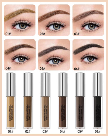 - TINTED BROW GEL - The upgraded tinted brow gel contains high-quality man-made fiber, Silicone Resin, and Vitamin E. Nourish eyebrows and solid color with luster, at the same time that easy to shapes, fills, holds your brows in place. The eyebrow gel fills in sparse areas to increase fullness and thickness for brows and make them look natural and healthy