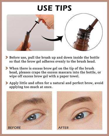 - EASY TO USE - The long-wear brow tint makeup gel come with eyebrow brush and eyebrow trimmer. Firstly, clean up the excess eyebrow hair, then dip a proper amount of cream (Tips, excess gel can be scraped off at the top of the bottle or wiped off with a paper towel, applying small amounts several times), which use the spiral brush to make your eyebrow more vivid and natural. Your brows will be perfect looking in just a few minutes.