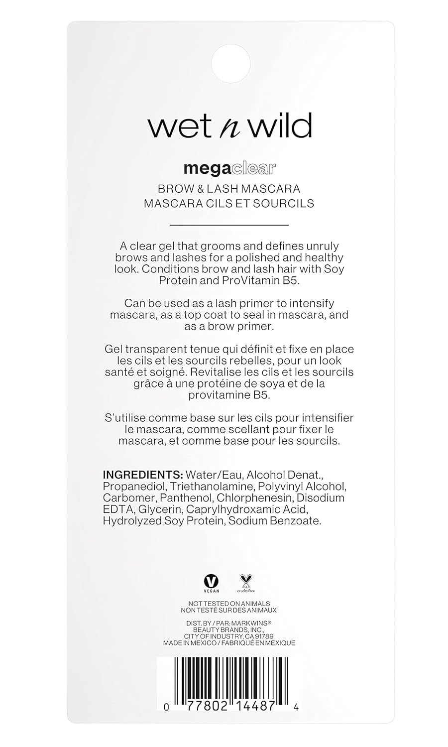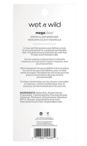 wet n wild Mega Clear Brow & Lash Mascara - Sculpts Brows, Defines Lashes, Conditioning with Soy Protein & ProVitamin B5, Primer & Top Coat, Cruelty-Free & Vegan - Clear